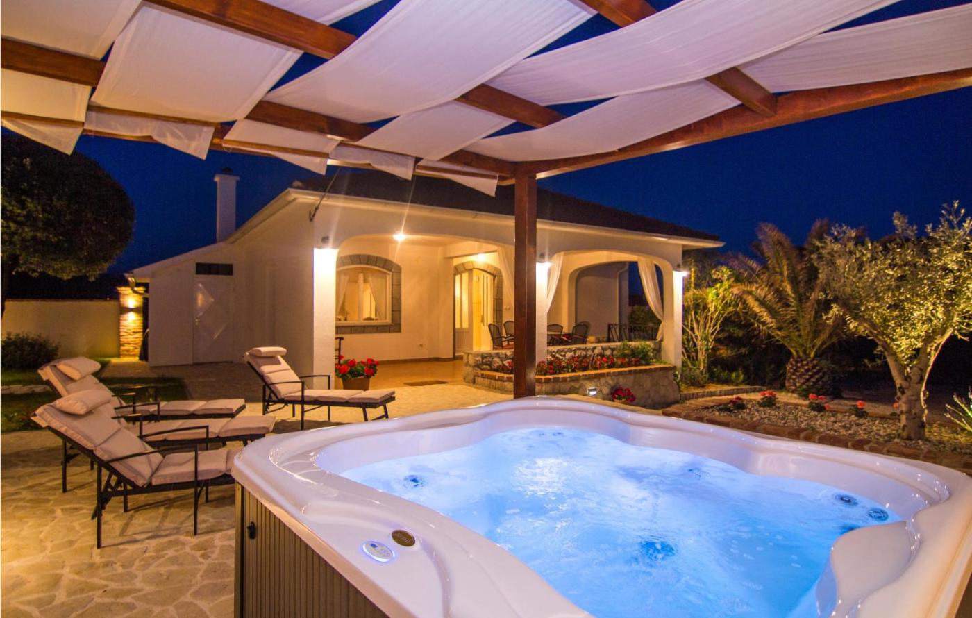 Four-Bedroom Holiday Home. This holiday homes special features are the private pool and the hot tub. Featuring a private entrance, this air-conditioned holiday home consists of 1 living room, 3 separate bedrooms and 3 bathrooms with a shower and a hairdryer. The fully equipped kitchen features a stovetop, a refrigerator, a dishwasher and kitchenware. The spacious holiday home provides a washing machine, a tea and coffee maker, a dining area, a barbecue and a TV. The unit offers 3 beds and 1 futon.