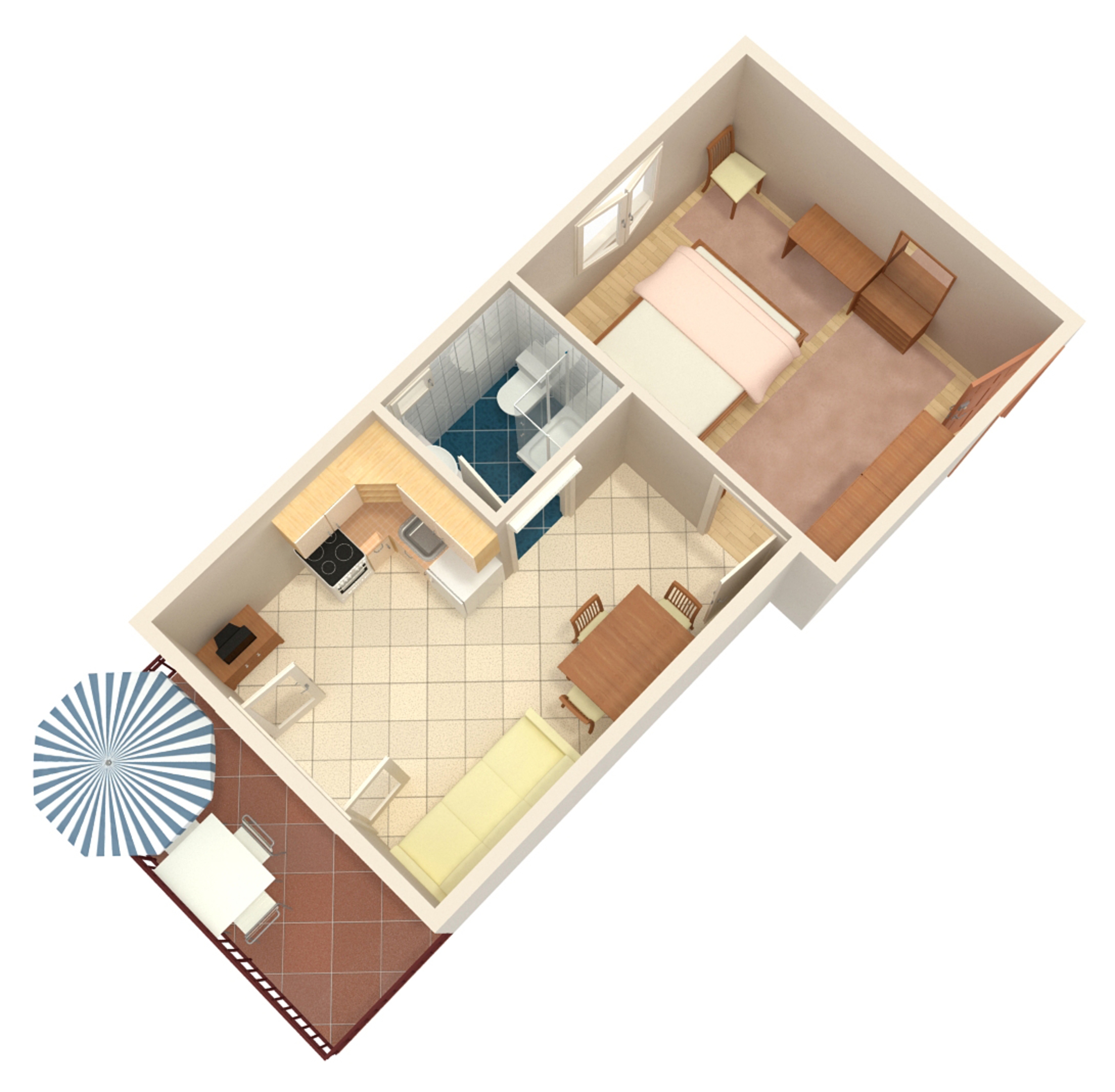Apartment can accommodate 4 guests. Beds are situated in 1 sleeping rooms, but also in the living room, within 29m2. Guests can use a private terrace to enjoy the warm summer evenings. Food can be prepared using barbecue which is shared with other guests too. INCLUDED IN THE PRICE: tourist tax, final cleaning, air-conditioning, parking, internet, baby cot, iron, ironing board, hairdryer. OPTIONAL ADDITIONAL COSTS: laundry (€5.00 washing), additional bed (€5.00 per night). The availability of additional services for your chosen dates of stay, as well as their prices (if none are listed) must be checked ahead of time. Any additional services not shown in the price calculation are payable directly to the property owner and only if used by the visitor. Discounts to the base price: free day 14=13 (for reservations of 14 or more days you get one free day for the stay until 31122026).