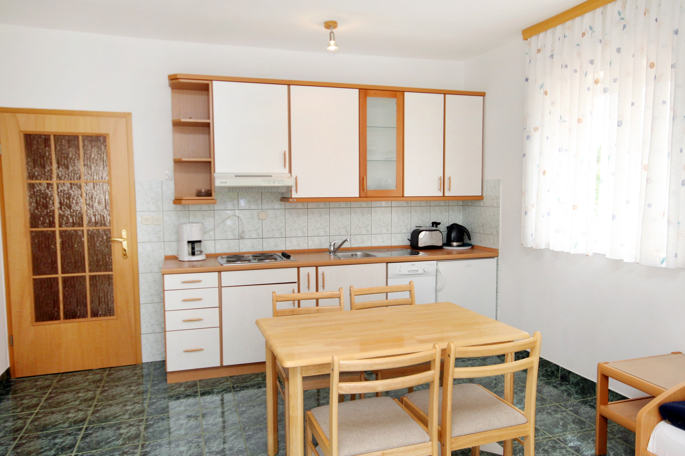 Apartment can accommodate 4 guests. Beds are situated in 1 sleeping rooms, but also in the dining room, within 40m2. Guests can use a private terrace to enjoy the warm summer evenings. Food can be prepared using barbecue which is shared with other guests too. Shared pool is on disposal during stay. INCLUDED IN THE PRICE: tourist tax, final cleaning, pool, parking, internet, baby cot, iron, ironing board, hairdryer. OPTIONAL ADDITIONAL COSTS: air-conditioning (€5.00 per night), laundry (€5.00 washing). The availability of additional services for your chosen dates of stay, as well as their prices (if none are listed) must be checked ahead of time. Any additional services not shown in the price calculation are payable directly to the property owner and only if used by the visitor. Discounts to the base price: free day 21=19 (for reservations of 21 or more days you get 2 free days for the stay until 31122026).