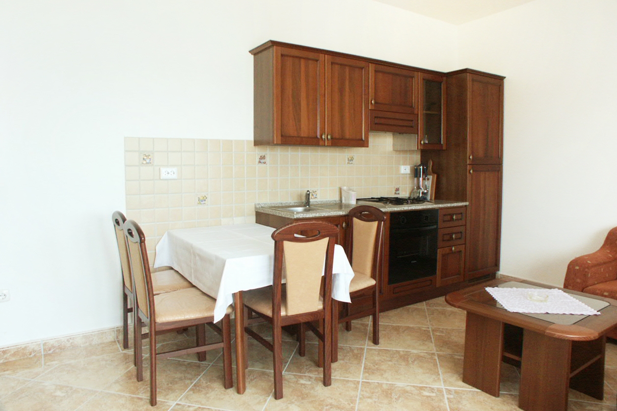 Apartment can accommodate 4 guests. Beds are situated in 1 sleeping rooms, but also in the living room, within 42m2. Guests can use a private terrace to enjoy the warm summer evenings. The apartment offers the sea view. Food can be prepared using barbecue which is shared with other guests too. This accommodation unit welcomes pets at an additional charge. INCLUDED IN THE PRICE: tourist tax, final cleaning, air-conditioning, parking, internet, iron, ironing board. OBLIGATORY ADDITIONAL COSTS: short stay fee (surcharge depending on a number of booked nights: 30% - 1, 20% - 2, 10% - 3). OPTIONAL ADDITIONAL COSTS: pets (€10.00 per night), additional bed (€5.00 per night). The availability of additional services for your chosen dates of stay, as well as their prices (if none are listed) must be checked ahead of time. Any additional services not shown in the price calculation are payable directly to the property owner and only if used by the visitor.