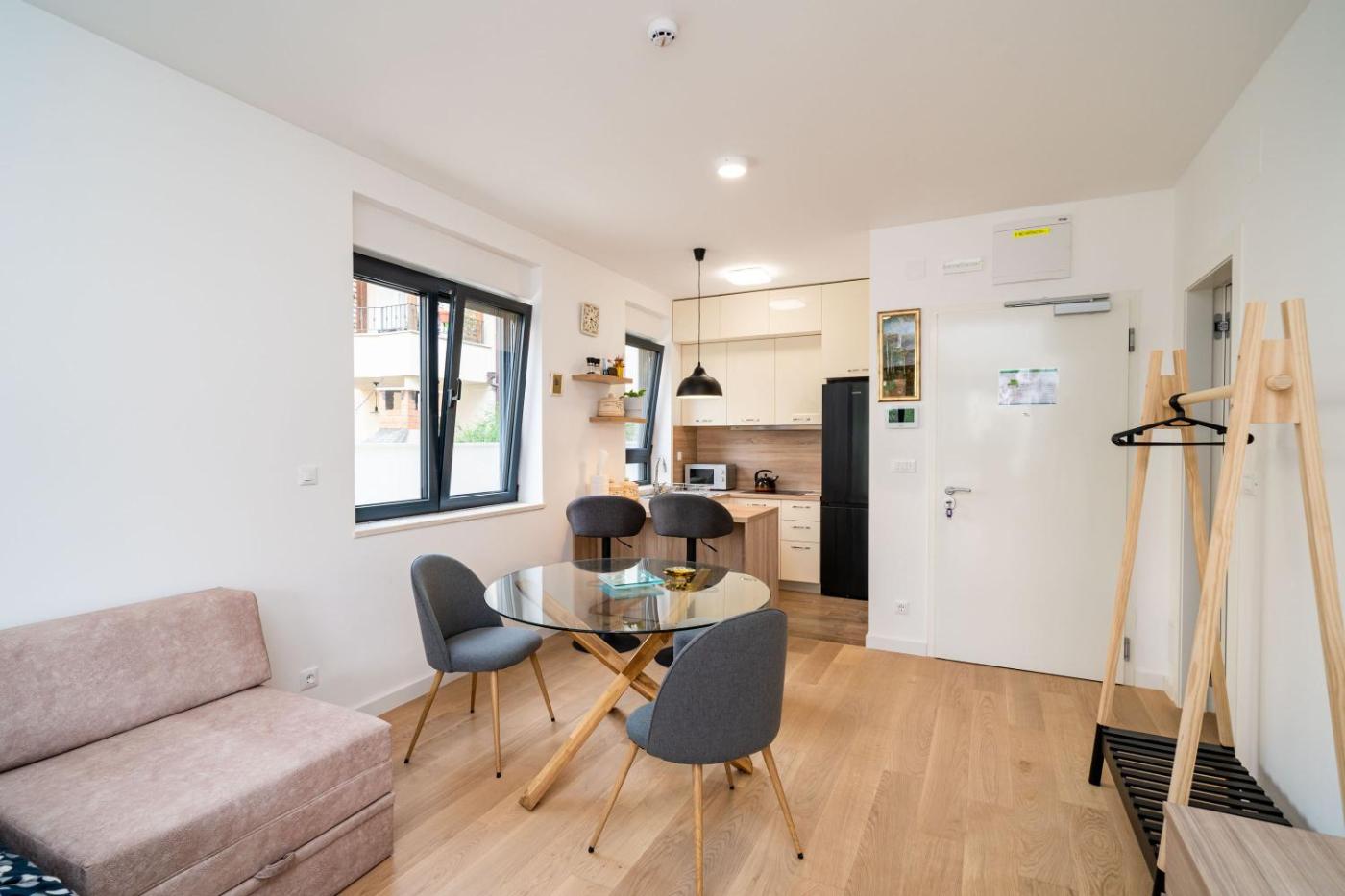 Studio Apartment with Balcony. Featuring free toiletries, this studio includes a private bathroom with a shower and a hairdryer. In the well-equipped kitchen, guests will find a stovetop, a refrigerator, a dishwasher and kitchenware. This air-conditioned studio features a dining area, a flat-screen TV with cable channels a washing machine and a balcony. The unit has 1 bed.