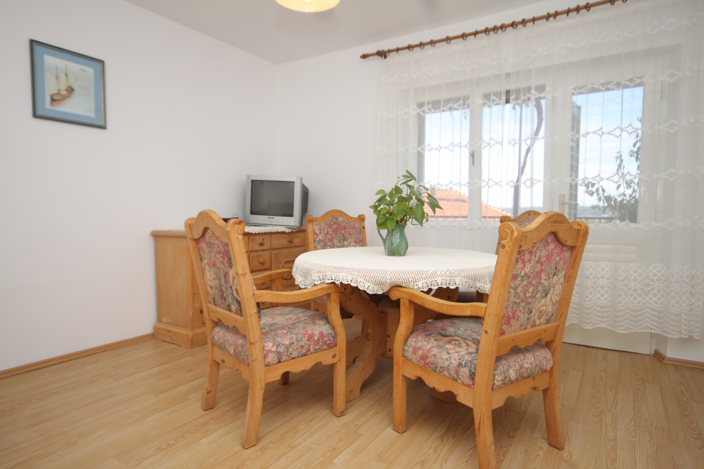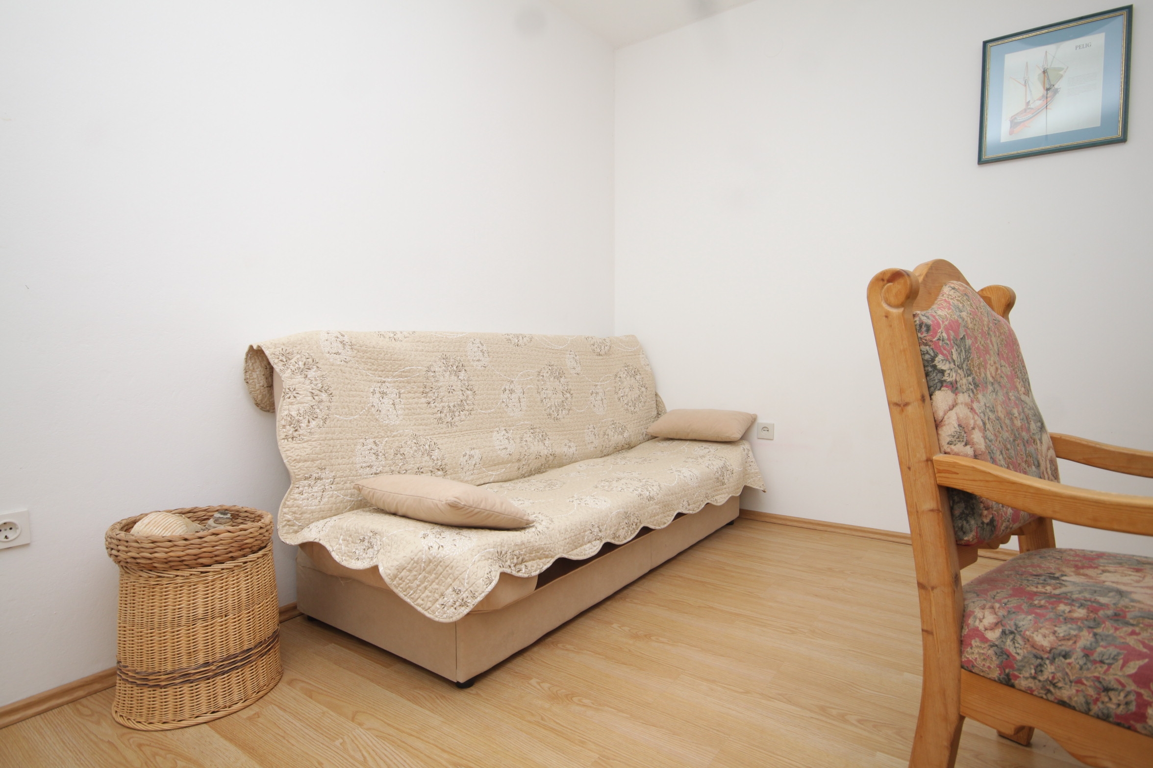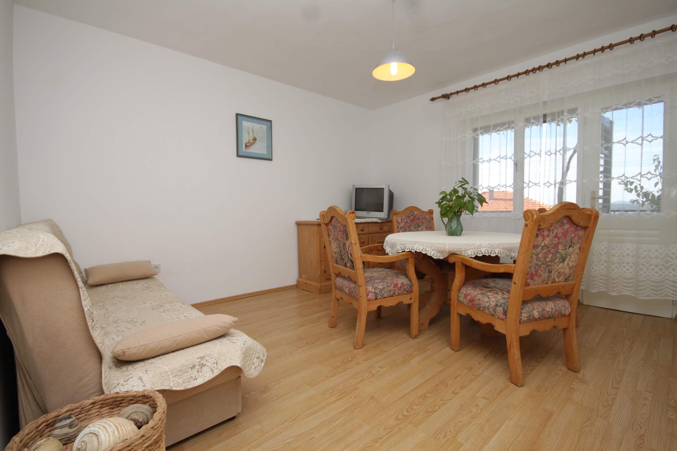 Apartment can accommodate 5 guests. Beds are situated in 2 sleeping rooms, but also in the living room, within 56m2. Guests can use a private terrace to enjoy the warm summer evenings. The apartment offers the sea view. Food can be prepared using barbecue which is shared with other guests too. This accommodation unit welcomes pets at an additional charge. INCLUDED IN THE PRICE: tourist tax, final cleaning, air-conditioning, parking, internet. OBLIGATORY ADDITIONAL COSTS: short stay fee (surcharge depending on a number of booked nights: 30% - 1, 20% - 2, 10% - 3). OPTIONAL ADDITIONAL COSTS: pets (€10.00 per night). The availability of additional services for your chosen dates of stay, as well as their prices (if none are listed) must be checked ahead of time. Any additional services not shown in the price calculation are payable directly to the property owner and only if used by the visitor.