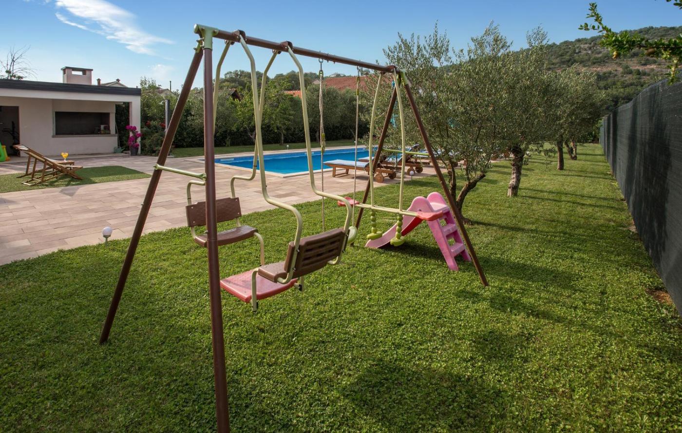 For guests with children, the holiday home provides outdoor play equipment.