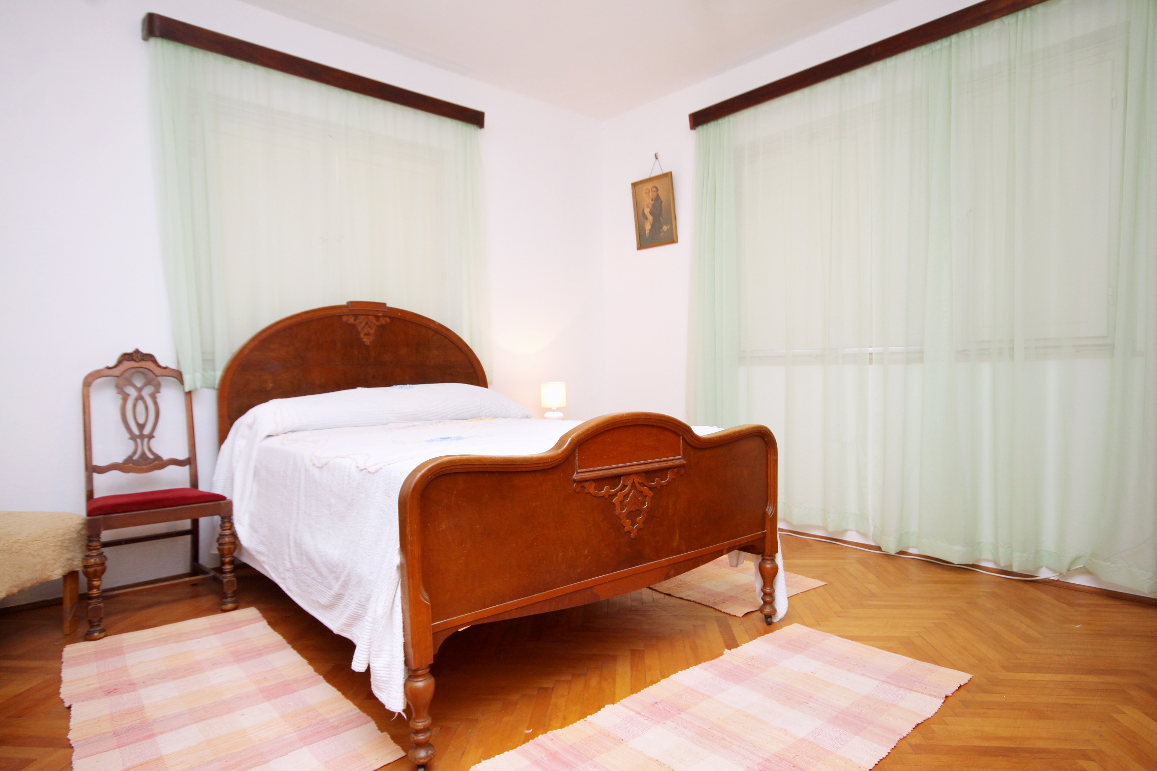 Apartment can accommodate 8 guests. Beds are situated in 3 sleeping rooms, but also in the living room, within 105m2. Guests can use a private terrace to enjoy the warm summer evenings. Food can be prepared using barbecue which is shared with other guests too. Shared pool is on disposal during stay. Notthe rooms of the booked accommodation unit are connectedone whole. Some of the rooms of the accommodation unit are not connected with the rest of the unit. INCLUDED IN THE PRICE: tourist tax, final cleaning, air-conditioning, pool, parking, garage, internet, boat mooring, baby cot, iron, ironing board, hairdryer. OBLIGATORY ADDITIONAL COSTS: short stay fee (surcharge depending on a number of booked nights: 30% - 1, 20% - 2, 10% - 3). OPTIONAL ADDITIONAL COSTS: additional bed (€15.00 per night). The availability of additional services for your chosen dates of stay, as well as their prices (if none are listed) must be checked ahead of time. Any additional services not shown in the price calculation are payable directly to the property owner and only if used by the visitor.