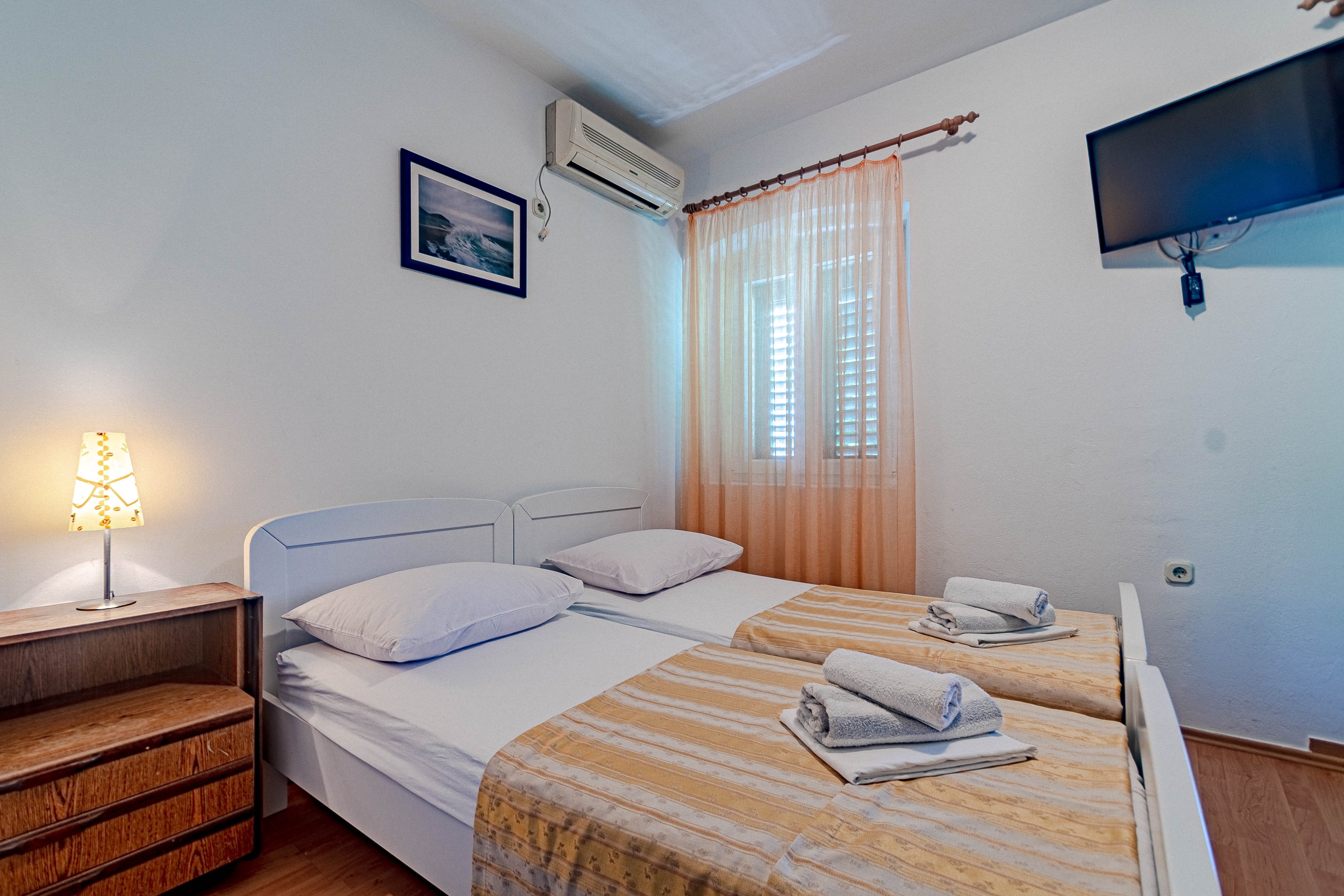 Studio flat can accommodate 2 guests. Beds are situated in 1 sleeping rooms, within 20m2. Food can be prepared using barbecue which is shared with other guests too. There is no balcony or terrace in the reserved accommodation unit. INCLUDED IN THE PRICE: tourist tax, final cleaning, internet, laundry, additional bed. OBLIGATORY ADDITIONAL COSTS: short stay fee (surcharge depending on a number of booked nights: 30% - 1, 20% - 2, 10% - 3). The availability of additional services for your chosen dates of stay, as well as their prices (if none are listed) must be checked ahead of time. Any additional services not shown in the price calculation are payable directly to the property owner and only if used by the visitor. Discounts to the base price: free day 14=13 (for reservations of 14 or more days you get one free day for the stay until 31122026).
