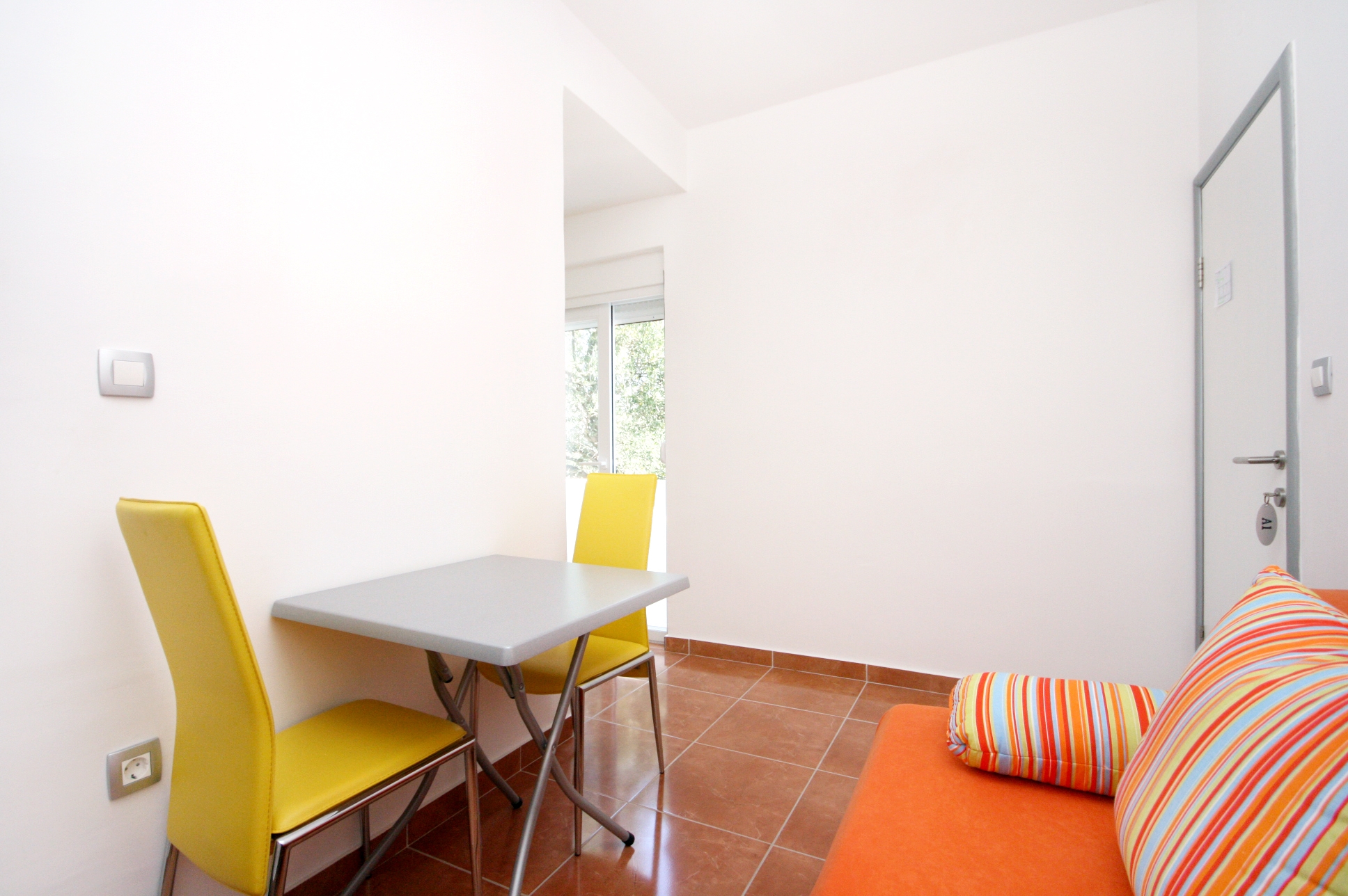Apartment can accommodate 4 guests. Beds are situated in 1 sleeping rooms, but also in the dining room, within 26m2. Guests can use a private balcony to enjoy the warm summer evenings. The apartment offers the sea view. INCLUDED IN THE PRICE: tourist tax, final cleaning, parking, internet, baby cot. OBLIGATORY ADDITIONAL COSTS: short stay fee (surcharge depending on a number of booked nights: 30% - 1, 20% - 2, 10% - 3). OPTIONAL ADDITIONAL COSTS: air-conditioning (€5.00 per night). The availability of additional services for your chosen dates of stay, as well as their prices (if none are listed) must be checked ahead of time. Any additional services not shown in the price calculation are payable directly to the property owner and only if used by the visitor. Discounts to the base price: free day 14=13 (for reservations of 14 or more days you get one free day for the stay until 31122026).