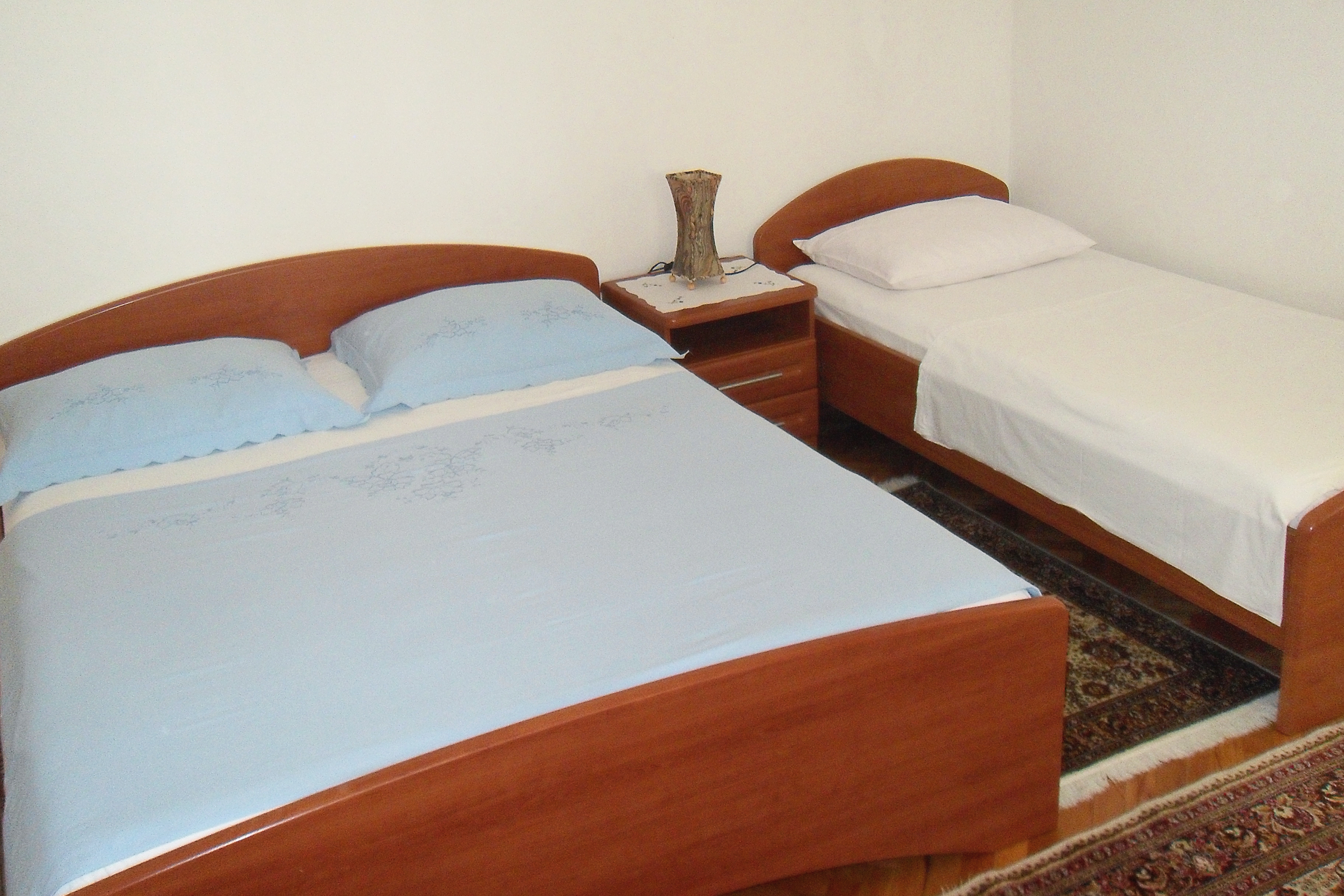 Room can accommodate 3 guests. Beds are situated in 1 sleeping rooms, within 19m2. Use of shared kitchen is possible. Food can be prepared using barbecue which is shared with other guests too. There is no balcony or terrace in the reserved accommodation unit. Reserved accommodation unit is a room with its own bathroom and shared kitchen at no additional charge. INCLUDED IN THE PRICE: tourist tax, final cleaning, shared kitchen, parking, internet, baby cot, iron, ironing board, hairdryer. OBLIGATORY ADDITIONAL COSTS: short stay fee (surcharge depending on a number of booked nights: 30% - 1, 20% - 2, 10% - 3). OPTIONAL ADDITIONAL COSTS: air-conditioning (€5.00 per night), additional bed (€10.00 per night). The availability of additional services for your chosen dates of stay, as well as their prices (if none are listed) must be checked ahead of time. Any additional services not shown in the price calculation are payable directly to the property owner and only if used by the visitor.