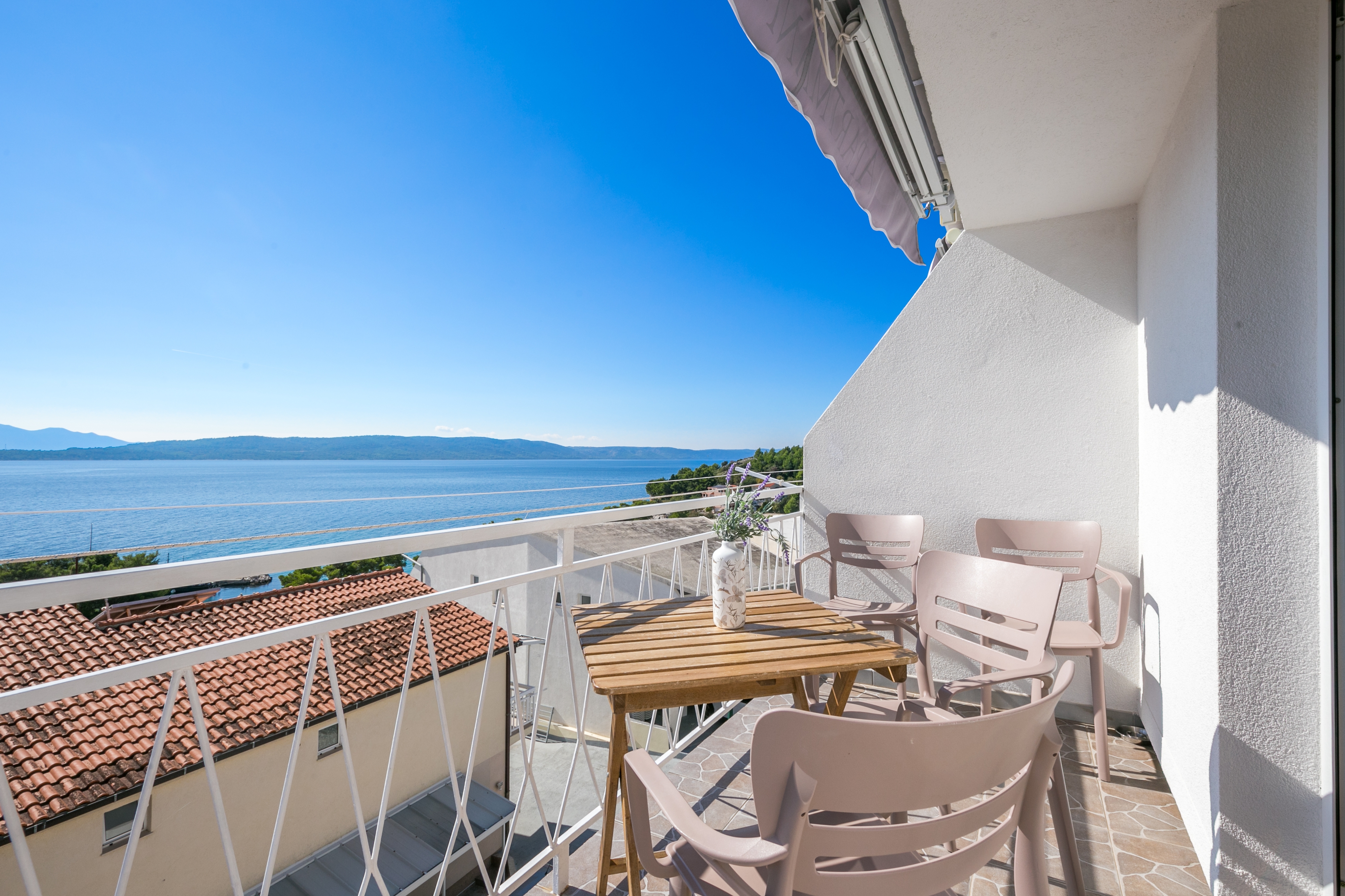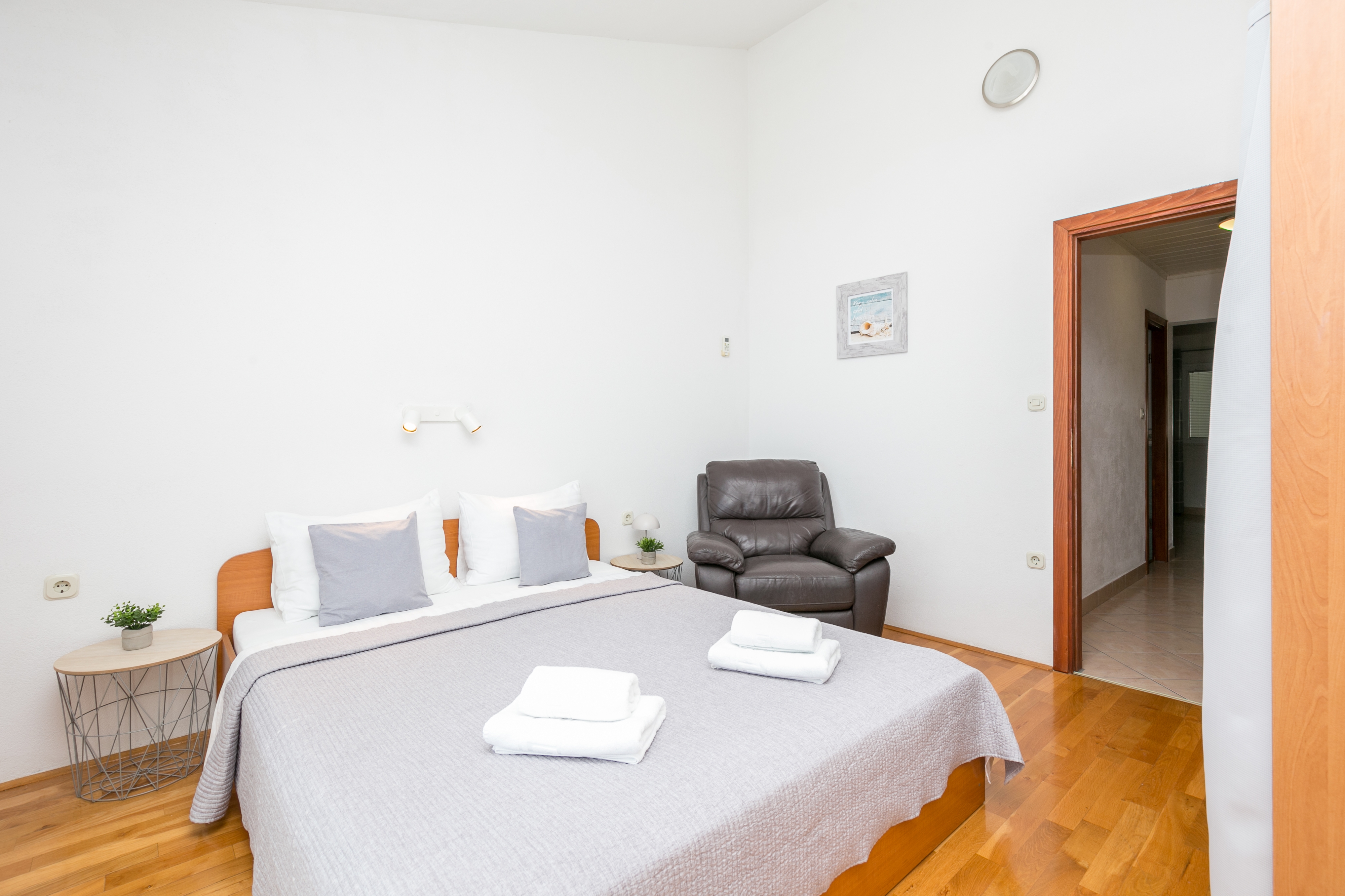 Apartment can accommodate 5 guests. Beds are situated in 1 sleeping rooms, but also in the living room, within 35m2. Guests can use a private balcony to enjoy the warm summer evenings. The apartment offers the sea view. Food can be prepared using barbecue which is shared with other guests too. INCLUDED IN THE PRICE: tourist tax, final cleaning, air-conditioning, parking, internet, laundry, baby cot, iron, ironing board. OBLIGATORY ADDITIONAL COSTS: short stay fee (surcharge depending on a number of booked nights: 30% - 1, 20% - 2, 10% - 3). The availability of additional services for your chosen dates of stay, as well as their prices (if none are listed) must be checked ahead of time. Any additional services not shown in the price calculation are payable directly to the property owner and only if used by the visitor. Discounts to the base price: free day 14=13 (for reservations of 14 or more days you get one free day for the stay until 31122026).