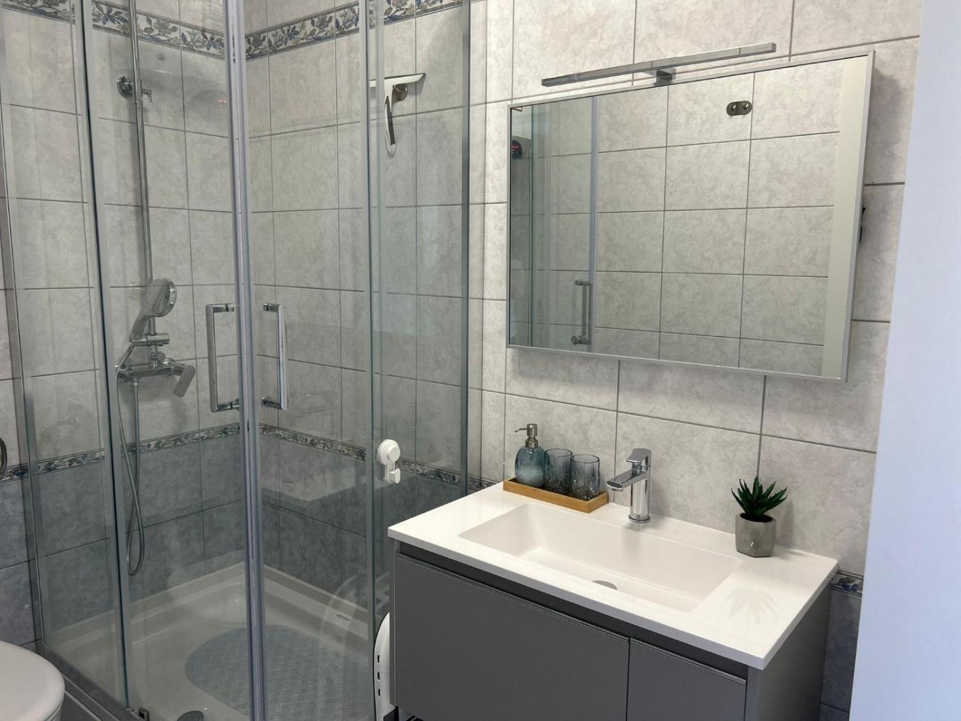 One-Bedroom Apartment. Boasting a private entrance, this air-conditioned apartment features a kitchen, 1 bedroom and 1 bathroom with a shower and a hairdryer. Guests will find a stovetop, a refrigerator and kitchenware in the kitchen. The apartment also comes with a barbecue. Featuring a terrace with mountain views, this apartment also features a seating area and a flat-screen TV with cable channels. The unit has 1 bed.