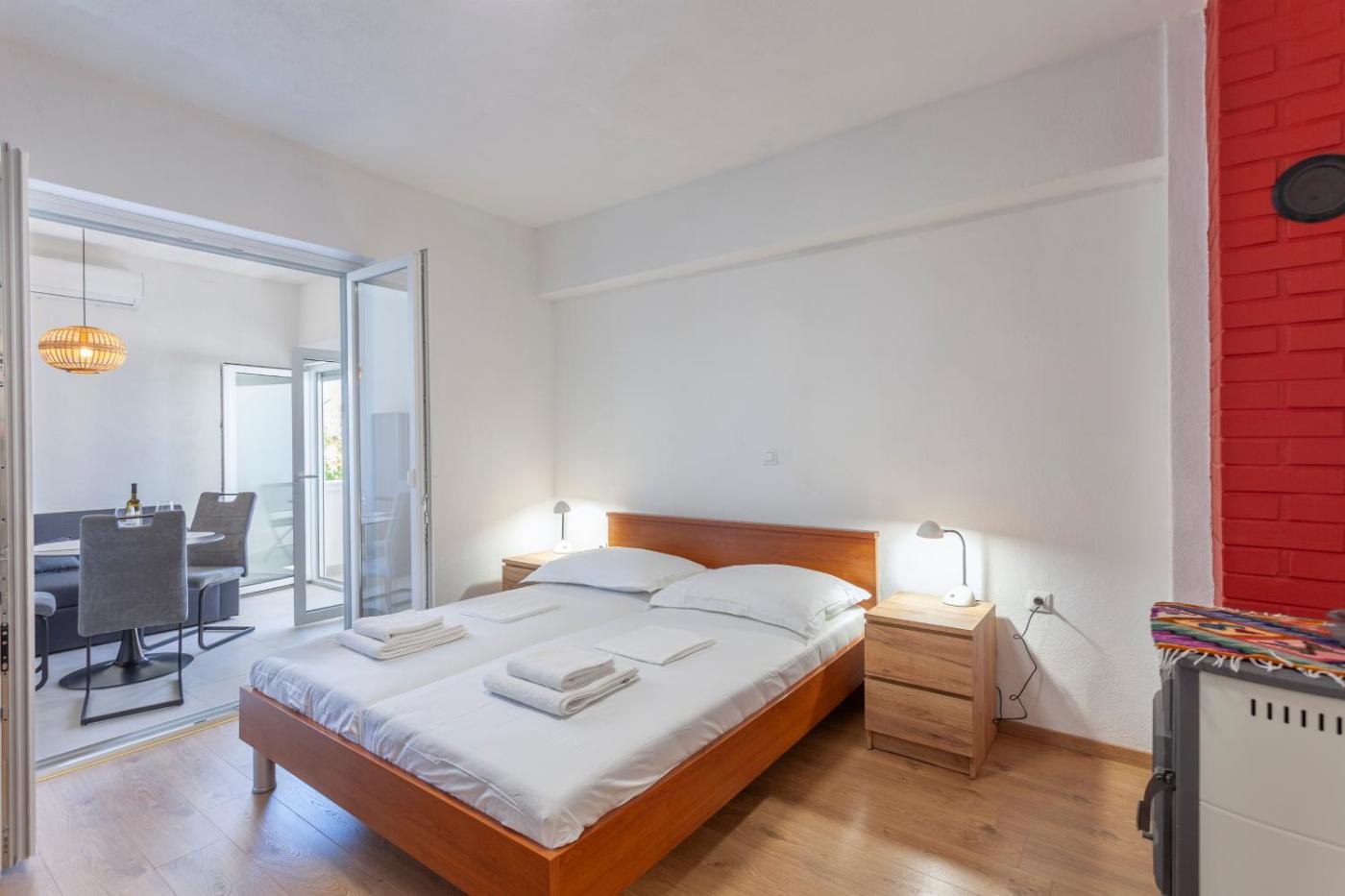 One-Bedroom Apartment. Featuring a private entrance, this air-conditioned apartment consists of 1 living room, 1 separate bedroom and 1 bathroom with a shower and a hairdryer. Guests can make meals in the kitchen that is equipped with a stovetop, a refrigerator, kitchenware and an oven. Boasting a balcony with sea views, this apartment also provides a washing machine and a flat-screen TV with satellite channels. The unit offers 2 beds.