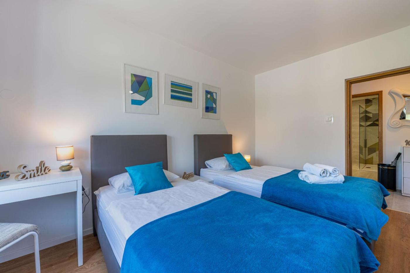 Two-Bedroom Apartment. Guests will have a special experience as this apartment provides a pool with a view. Featuring a private entrance, this spacious apartment also is comprised of 2 bedrooms, a seating area and 1 bathroom with a shower and a hairdryer. Guests will find a stovetop, a refrigerator, a dishwasher and an oven in the well-equipped kitchen. The apartment also has a barbecue. The air-conditioned apartment offers a flat-screen TV with satellite channels, a washing machine, a tea and coffee maker, a dining area as well as sea views. The unit offers 2 beds.