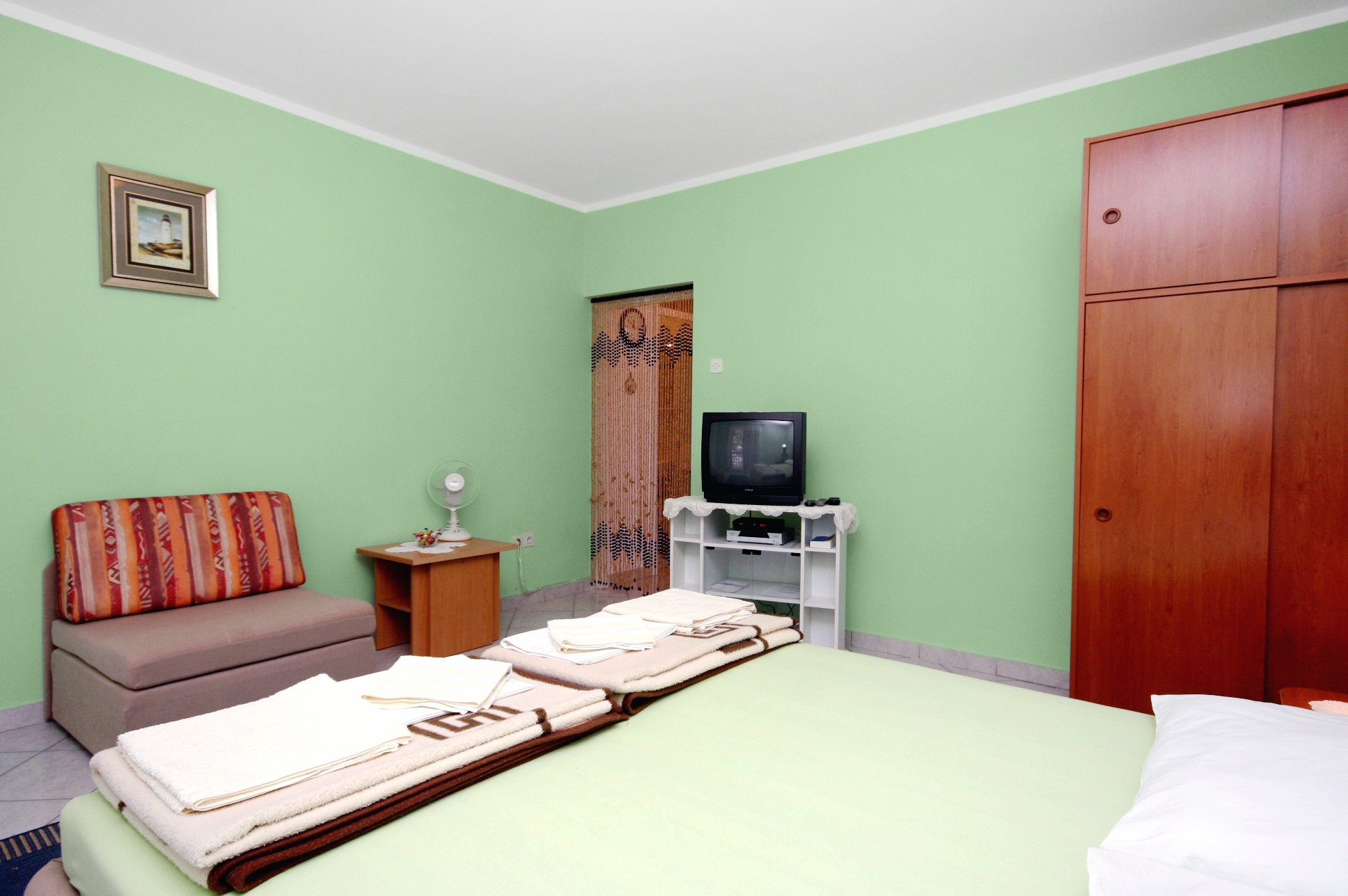 Studio flat can accommodate 3 guests. Beds are situated in 1 sleeping rooms, within 29m2. Guests can use a private terrace to enjoy the warm summer evenings. The studio offers the sea view. Food can be prepared using barbecue which is shared with other guests too. INCLUDED IN THE PRICE: tourist tax, final cleaning, parking, internet, iron, ironing board, hairdryer. OBLIGATORY ADDITIONAL COSTS: short stay fee (surcharge depending on a number of booked nights: 30% - 1, 20% - 2, 10% - 3). OPTIONAL ADDITIONAL COSTS: air-conditioning (€8.00 per night), garage (€5.00 per night), laundry (€5.00 washing). The availability of additional services for your chosen dates of stay, as well as their prices (if none are listed) must be checked ahead of time. Any additional services not shown in the price calculation are payable directly to the property owner and only if used by the visitor. Discounts to the base price: free day 14=13 (for reservations of 14 or more days you get one free day for the stay until 31122026).