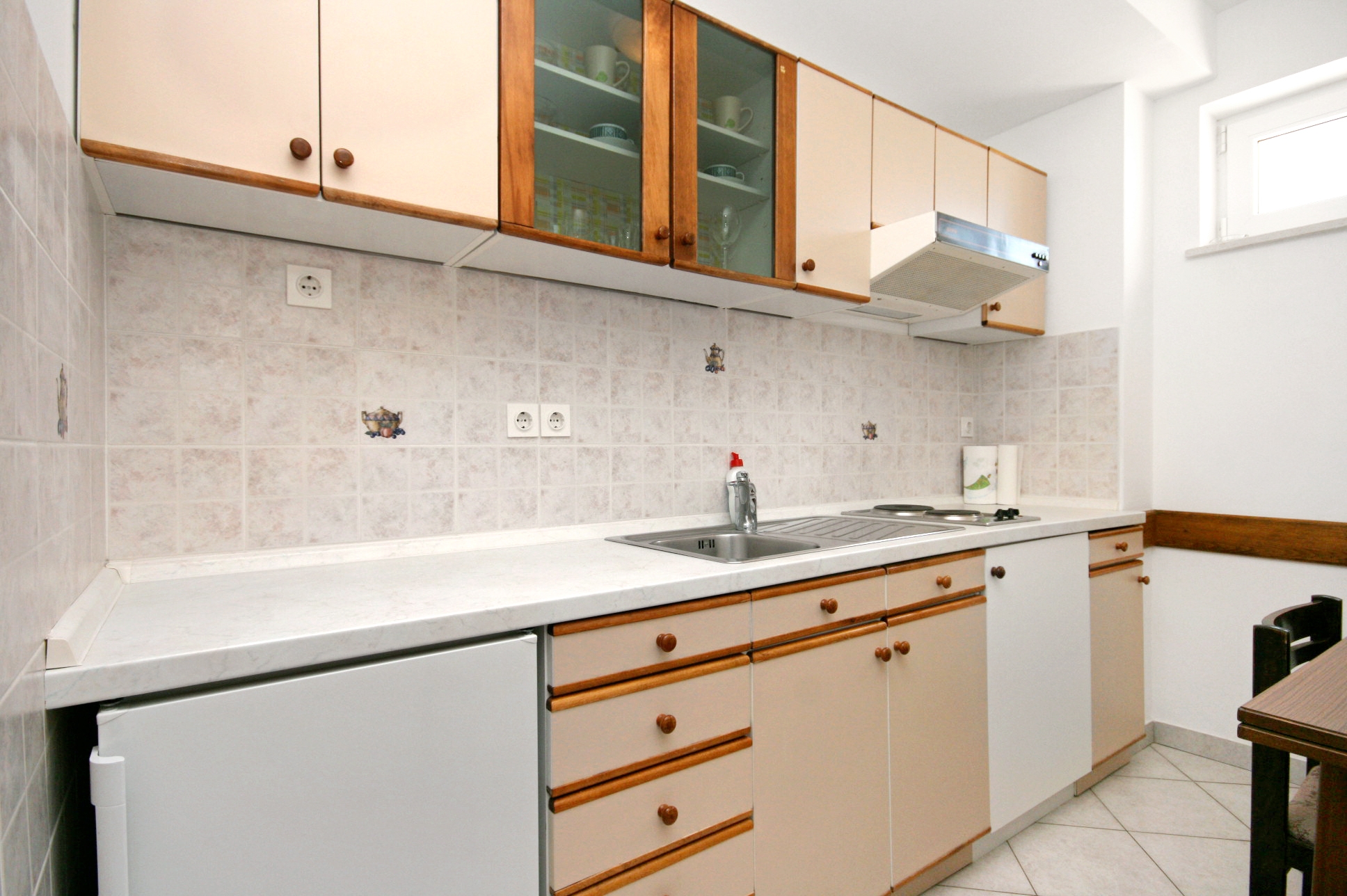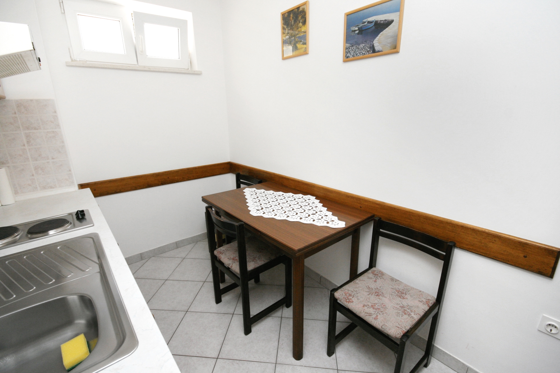 House 5593 in the town of Novi Vinodolski, Novi Vinodolski - Kvarner has accommodation units of type Studio flat (2) and is 560 m away from the sea. The nearest beach to this accommodation is a concrete slabs beach. As the house is dividedseveral accommodation units, other guests will most likely be present during your stay. The hosts will be in the house during your holiday. The house owner is under no obligation to accept additional persons and pets that were not stated in the reservation request and it is necessary to report them in advance.AMENITIES Courtyard (300m2, Sitting area), Parking lot (Number of parking spaces: 3, Distance from the house: 3 m), Garage, (Number of parking spaces: 1), Barbecue: shared, WiFi Internet, Laundry service, Hairdryer, Iron, Ironing board LOCATION AND ACCESS Main road between the property and the beach Number of stairs from the property to the beach: 46 Car access possible: Yes The facility is situated in relatively quiet surroundings The property isnt surrounded by greenery DISTANCES Sea: 560 m Beach: 560 m Center: 380 m Shop: 420 m Urgent medical care: 11 km Pharmacy: 500 m Exchange office: 330 m ATMBank machine: 500 m