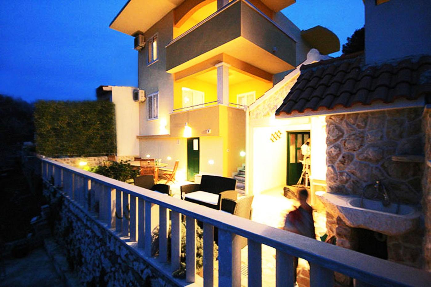 Four-Bedroom House with Terrace and Sea View. All rooms have air-condition and flor heat. The house consist of laundry and ironing room, the terrace with hot tube deck chairs, barbecue, tavern with fully equipped kitchen with ice machine and vinoteque. There are free covered parking place. Flat-screen cable TV are inrooms. ;