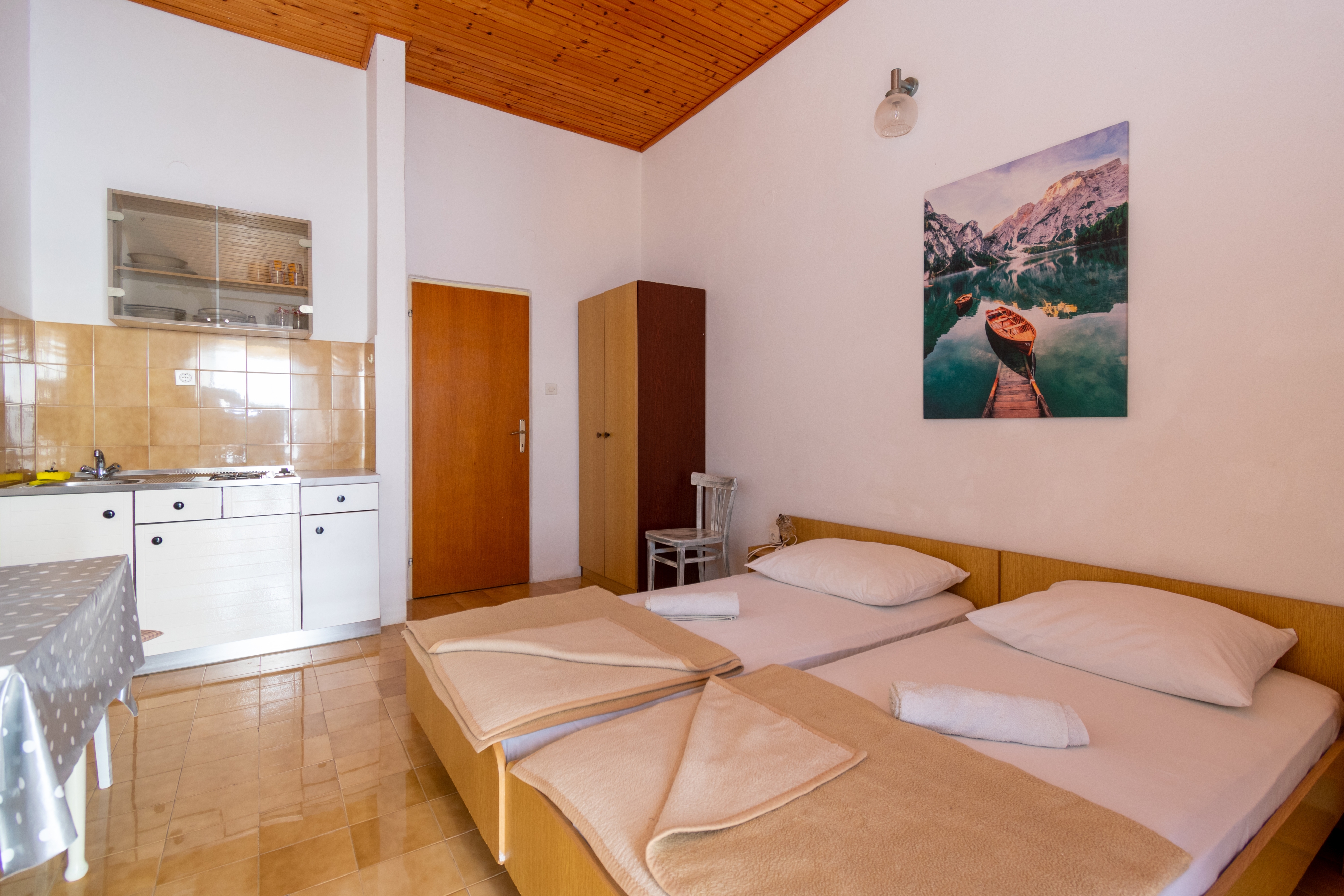 Apartment can accommodate 4 guests. Beds are situated in 1 sleeping rooms, but also in the living room, within 29m2. Guests can use a private balcony to enjoy the warm summer evenings. The apartment offers the sea view. Food can be prepared using barbecue which is shared with other guests too. This accommodation unit welcomes pets at an additional charge. INCLUDED IN THE PRICE: tourist tax, final cleaning, parking, internet. OBLIGATORY ADDITIONAL COSTS: short stay fee (surcharge depending on a number of booked nights: 30% - 1, 20% - 2, 10% - 3). OPTIONAL ADDITIONAL COSTS: pets (€3.00 per night). The availability of additional services for your chosen dates of stay, as well as their prices (if none are listed) must be checked ahead of time. Any additional services not shown in the price calculation are payable directly to the property owner and only if used by the visitor. Discounts to the base price: free day 14=13 (for reservations of 14 or more days you get one free day for the stay until 31122026).