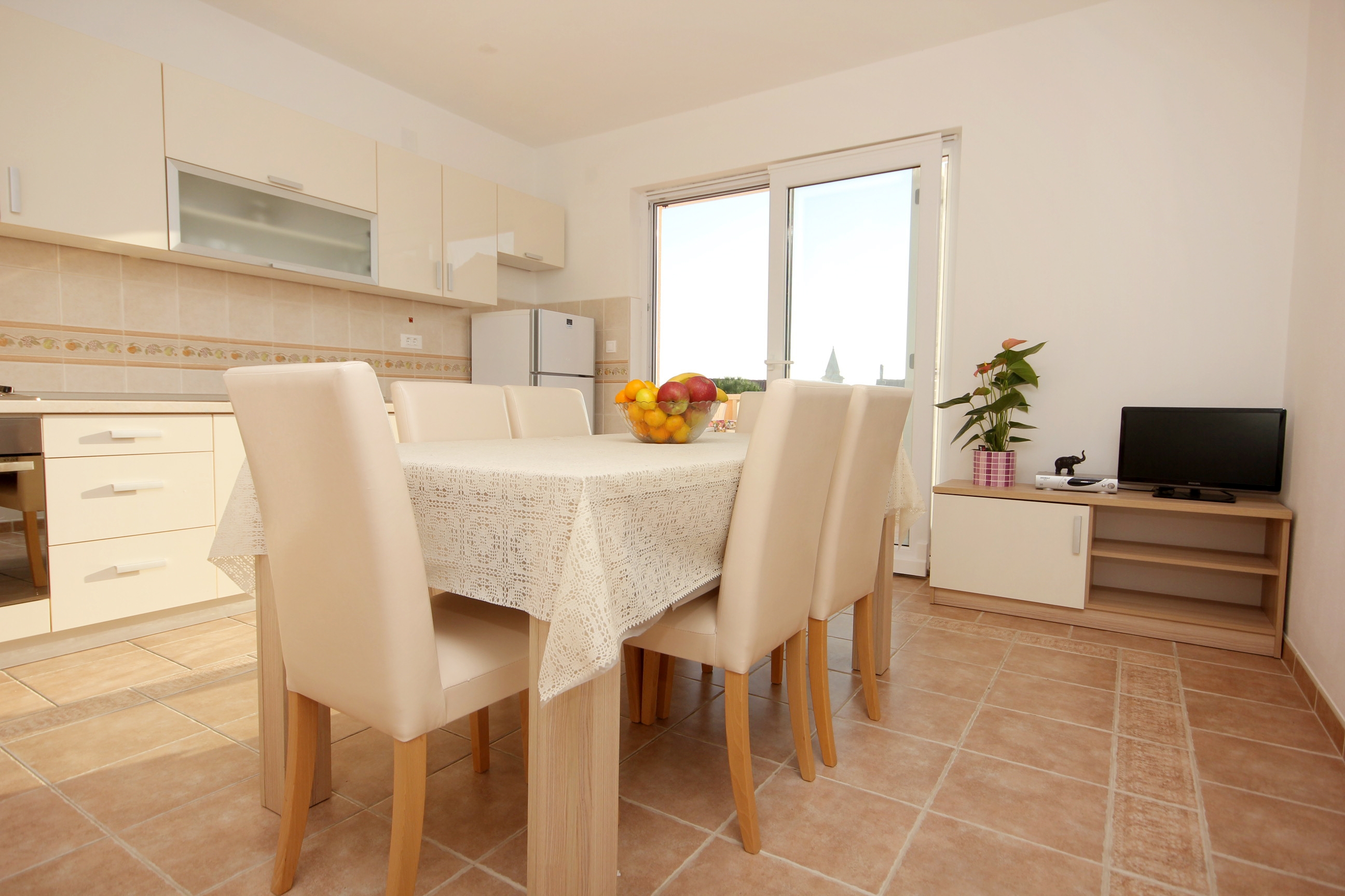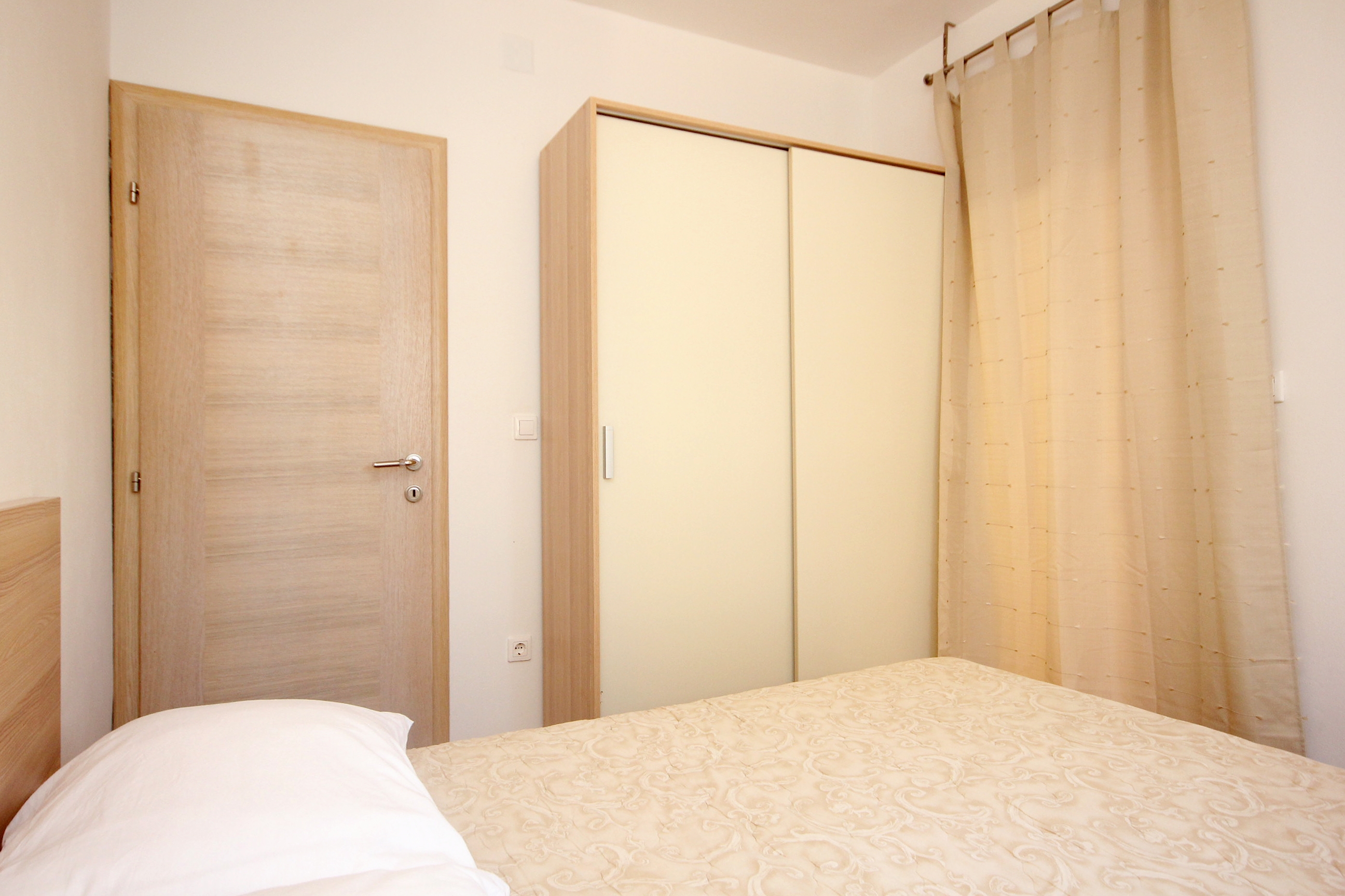Apartment can accommodate 6 guests. Beds are situated in 2 sleeping rooms, but also in the dining room, within 47m2. Guests can use a private terrace to enjoy the warm summer evenings. Food can be prepared using barbecue which is shared with other guests too. INCLUDED IN THE PRICE: tourist tax, final cleaning, air-conditioning, parking, internet, baby cot, iron, ironing board, hairdryer. OBLIGATORY ADDITIONAL COSTS: short stay fee (surcharge depending on a number of booked nights: 30% - 1, 20% - 2, 10% - 3). OPTIONAL ADDITIONAL COSTS: additional bed (€12.00 per night). The availability of additional services for your chosen dates of stay, as well as their prices (if none are listed) must be checked ahead of time. Any additional services not shown in the price calculation are payable directly to the property owner and only if used by the visitor. Discounts to the base price: free day 14=13 (for reservations of 14 or more days you get one free day for the stay until 31122026).