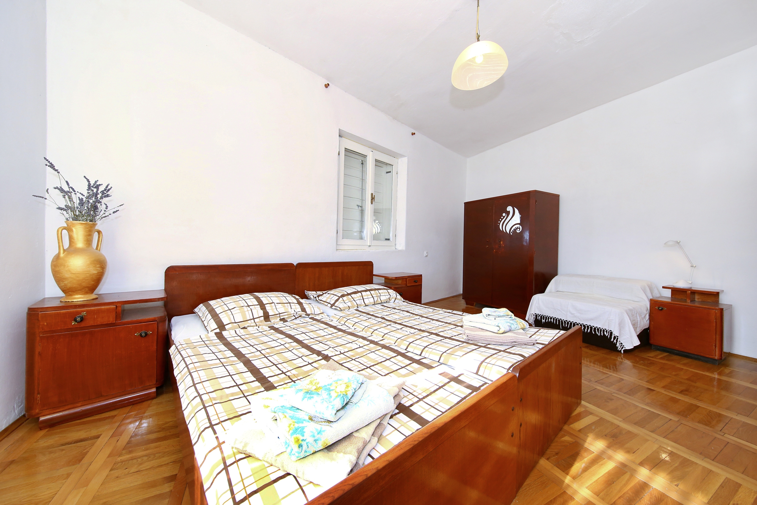 Apartment can accommodate 5 guests. Beds are situated in 2 sleeping rooms, within 68m2. Guests can use a private terrace to enjoy the warm summer evenings. The apartment offers the sea view. Food can be prepared using barbecue which is shared with other guests too. This accommodation unit welcomes pets at an additional charge. INCLUDED IN THE PRICE: tourist tax, final cleaning, air-conditioning, parking, internet, iron, ironing board, hairdryer, portable barbecue. OBLIGATORY ADDITIONAL COSTS: short stay fee (surcharge depending on a number of booked nights: 30% - 1, 20% - 2, 10% - 3). OPTIONAL ADDITIONAL COSTS: laundry (€5.00 washing), pets (€3.00 per night), additional bed (€5.00 per night). The availability of additional services for your chosen dates of stay, as well as their prices (if none are listed) must be checked ahead of time. Any additional services not shown in the price calculation are payable directly to the property owner and only if used by the visitor. Discounts to the base price: free day 14=13 (for reservations of 14 or more days you get one free day for the stay until 31122026).