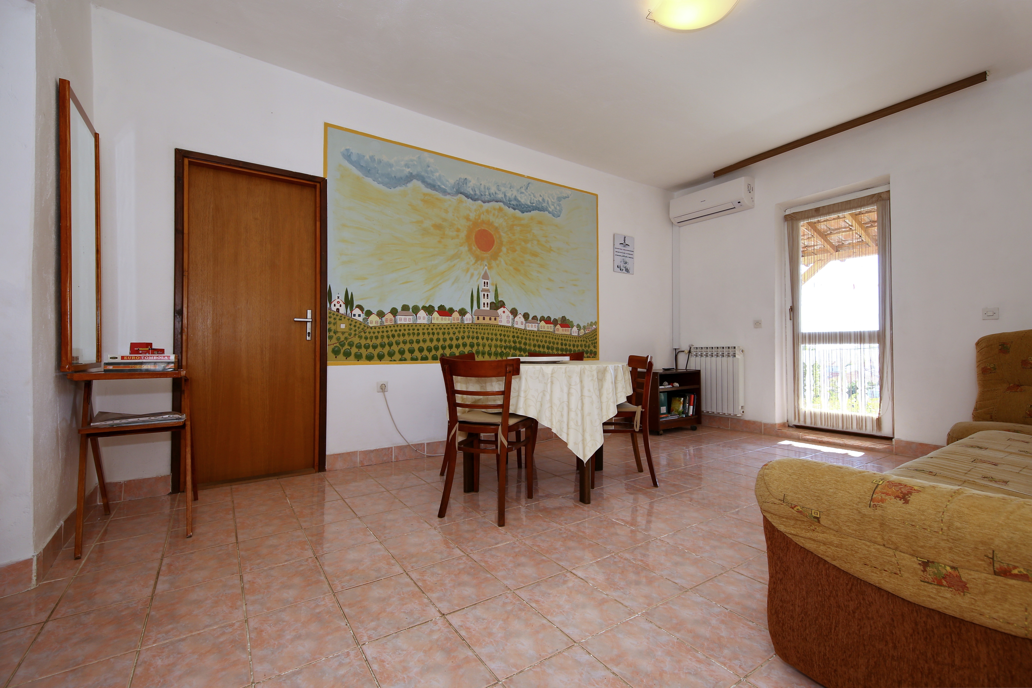 House 8411 in the town of Tkon, Pašman - North Dalmatia has accommodation units of type Apartment (1) and is 200 m away from the sea. The nearest beach to this accommodation is a concrete slabs beach. As this is the only apartment in the house, there will be no other guests for the duration of your stay. Hosts will reside in the house during your holiday. The house owner is under no obligation to accept additional persons and pets that were not stated in the reservation request and it is necessary to report them in advance.AMENITIES Infield (Well-kept), Courtyard (30m2), Parking lot (Number of parking spaces: 1, Distance from the house: In the courtyard), Barbecue: shared, WiFi Internet, Laundry service, Hairdryer, Iron, Ironing board, Portable barbecue LOCATION AND ACCESS Facility is situated near a local road Main road between the property and the beach Car access possible: Yes The facility is situated in relatively quiet surroundings The property isnt surrounded by greenery DISTANCES Sea: 200 m Beach: 200 m Center: 3 km Shop: 150 m Urgent medical care: 33 km Pharmacy: 230 m Exchange office: 150 m ATMBank machine: 230 m Tourist info: 300 m