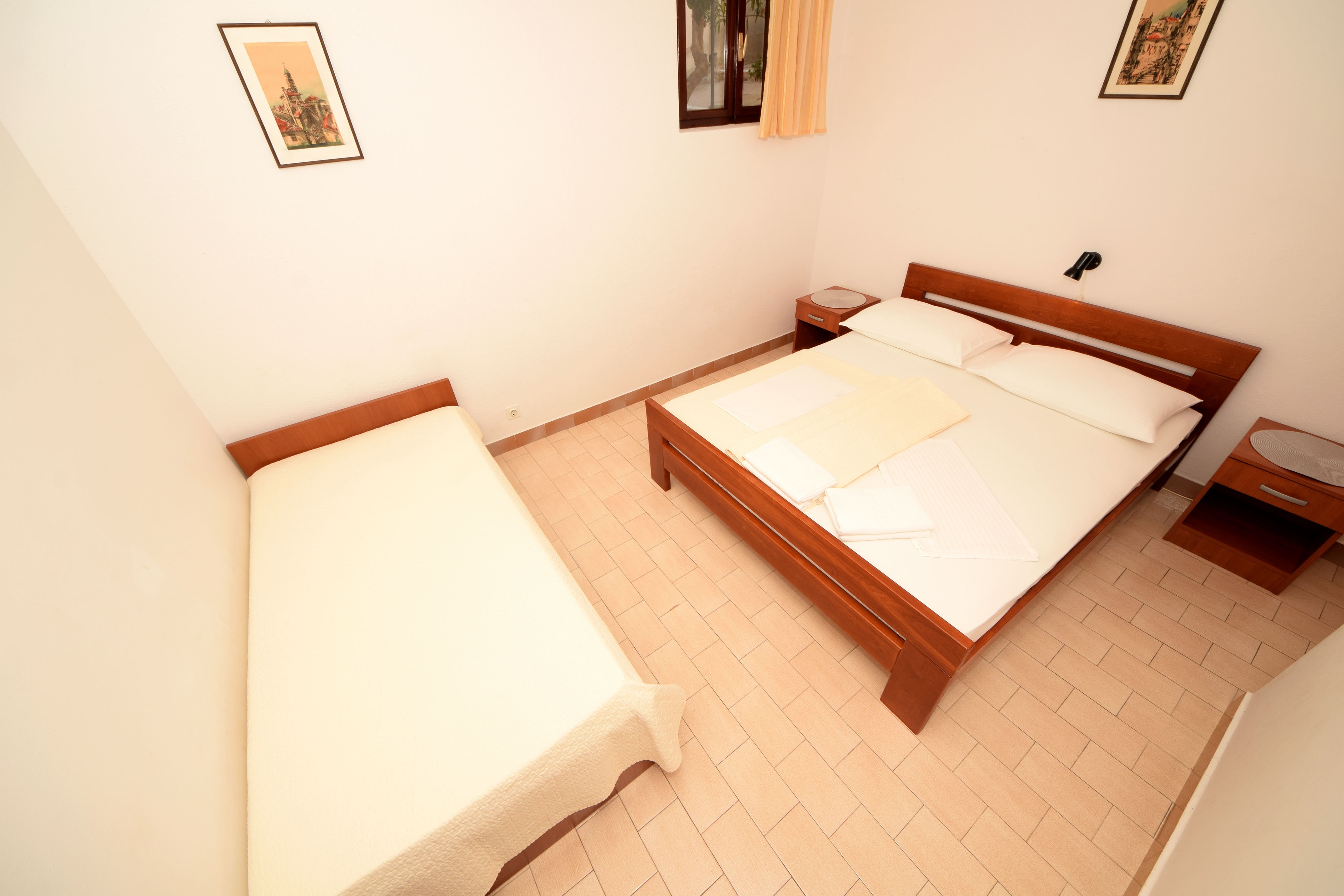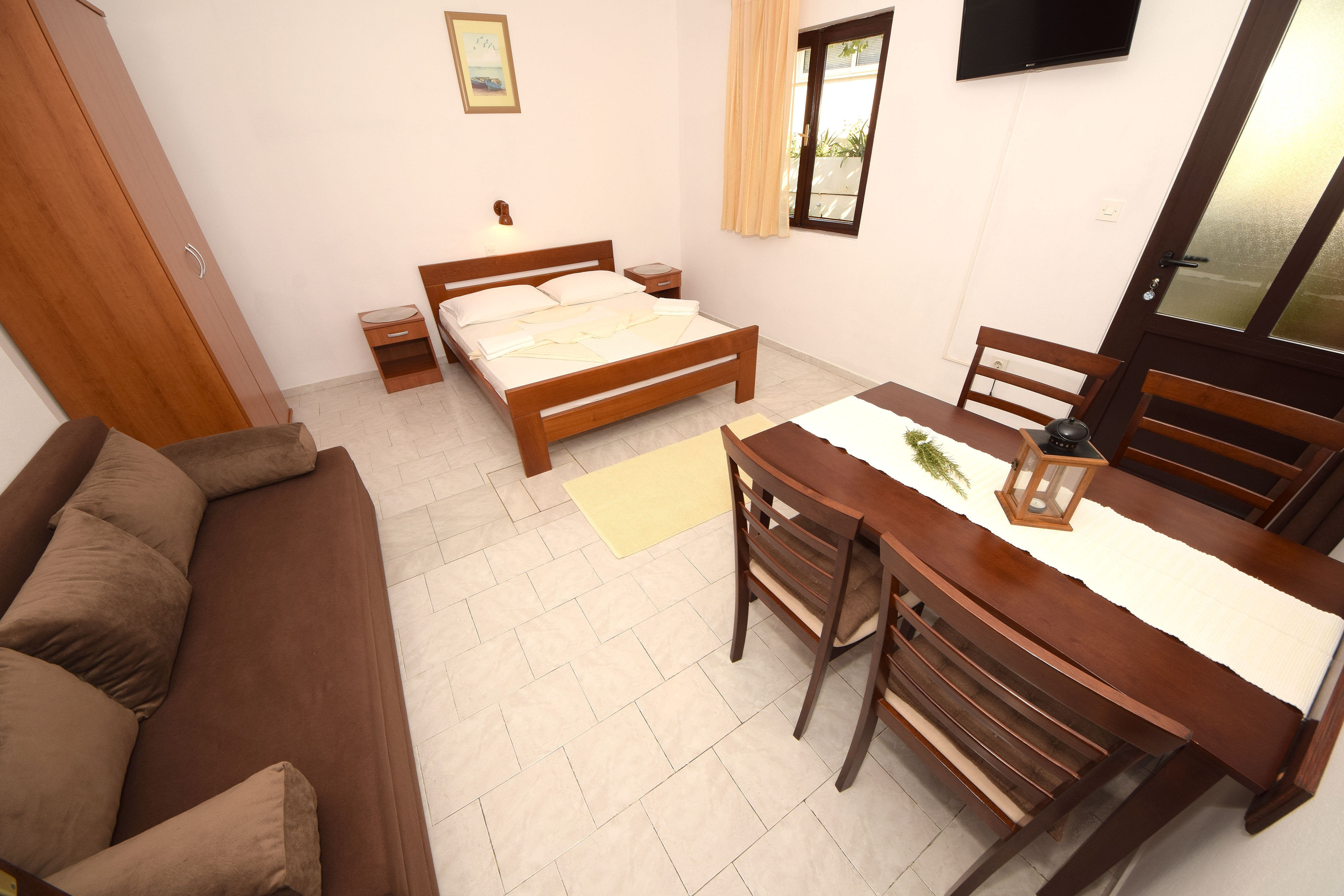 Apartment can accommodate 4 guests. Beds are situated in 2 sleeping rooms, within 46m2. Guests can use a private terrace to enjoy the warm summer evenings. The apartment offers the sea view. Food can be prepared using barbecue which is shared with other guests too. INCLUDED IN THE PRICE: tourist tax, final cleaning, air-conditioning, parking, internet. OBLIGATORY ADDITIONAL COSTS: short stay fee (surcharge depending on a number of booked nights: 30% - 1, 20% - 2, 10% - 3). OPTIONAL ADDITIONAL COSTS: boat mooring (€10.00 per night). The availability of additional services for your chosen dates of stay, as well as their prices (if none are listed) must be checked ahead of time. Any additional services not shown in the price calculation are payable directly to the property owner and only if used by the visitor.