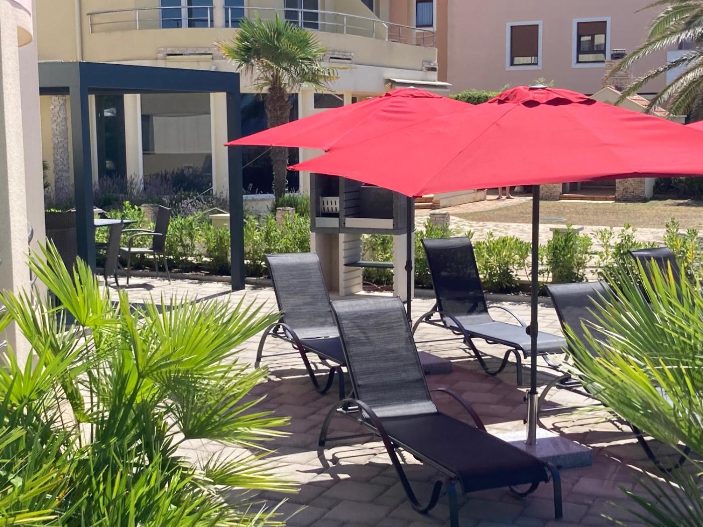 The apartment provides guests with a terrace, sea views, a seating area, satellite flat-screen TV, a fully equipped kitchenette with a dishwasher and a microwave, and a private bathroom with shower and a hair dryer. A toaster, a fridge and stovetop are also available, as well as a kettle. At the apartment complex, every unit comes with bed linen and towels.