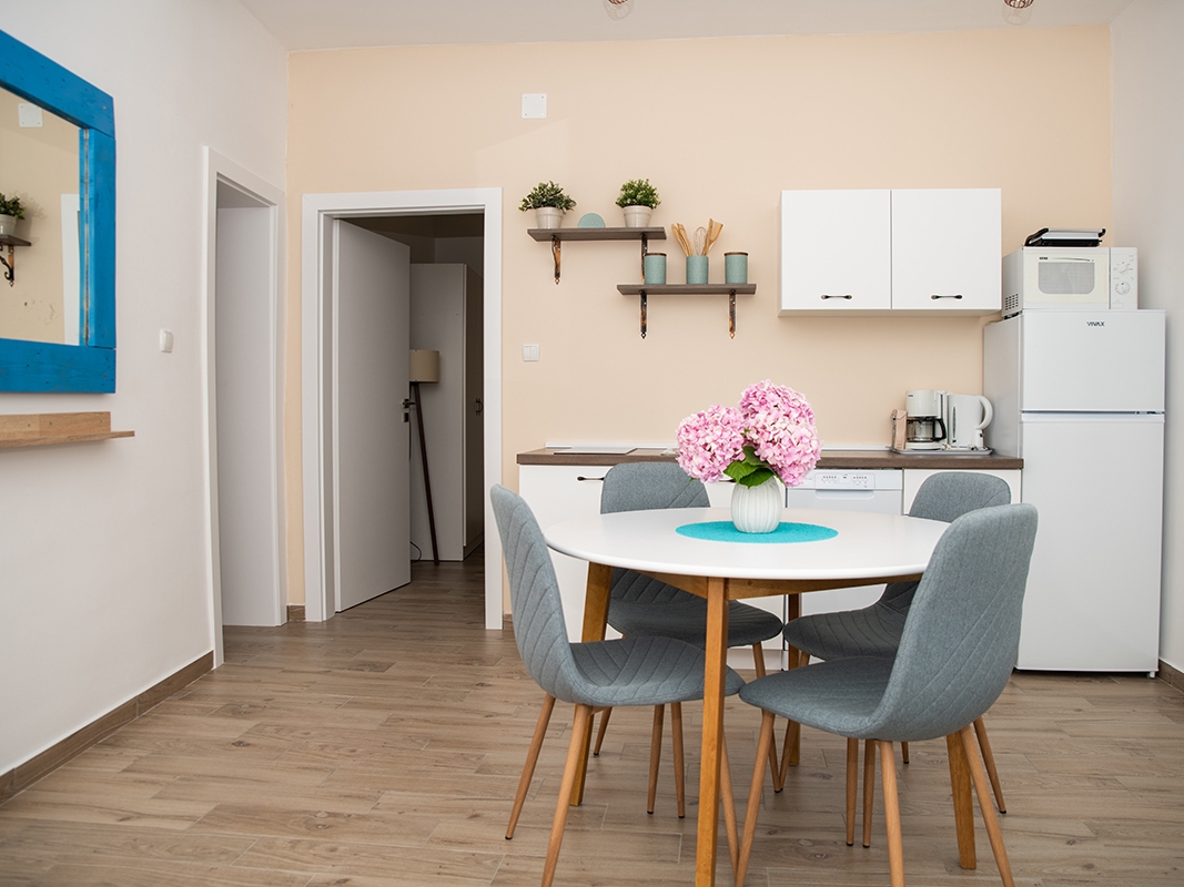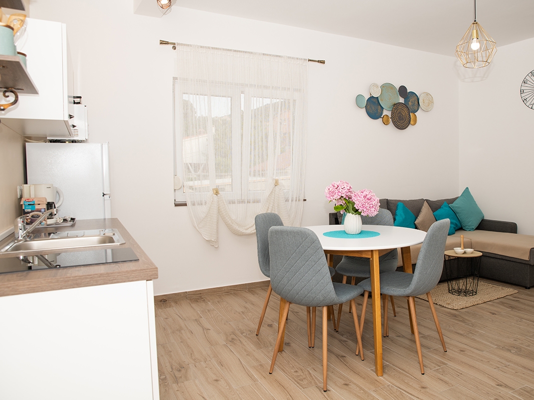 Apartment can accommodate 3 guests. Beds are situated in 1 sleeping rooms, but also in the living room, within 44m2. Guests can use a private terrace to enjoy the warm summer evenings. The apartment offers the sea view. For full enjoyment and relaxation there is a private barbecue for this accommodation guests only. This accommodation unit welcomes pets at an additional charge. Notthe rooms of the booked accommodation unit are connectedone whole. INCLUDED IN THE PRICE: tourist tax, final cleaning, air-conditioning, parking, internet, baby cot, iron, ironing board, hairdryer, portable barbecue. OBLIGATORY ADDITIONAL COSTS: short stay fee (surcharge depending on a number of booked nights: 30% - 1, 20% - 2, 10% - 3). OPTIONAL ADDITIONAL COSTS: laundry (€10.00 washing), boat mooring (€10.00 per night), pets (€15.00 per night). The availability of additional services for your chosen dates of stay, as well as their prices (if none are listed) must be checked ahead of time. Any additional services not shown in the price calculation are payable directly to the property owner and only if used by the visitor. Discounts to the base price: free day 14=13 (for reservations of 14 or more days you get one free day for the stay until 31122026).