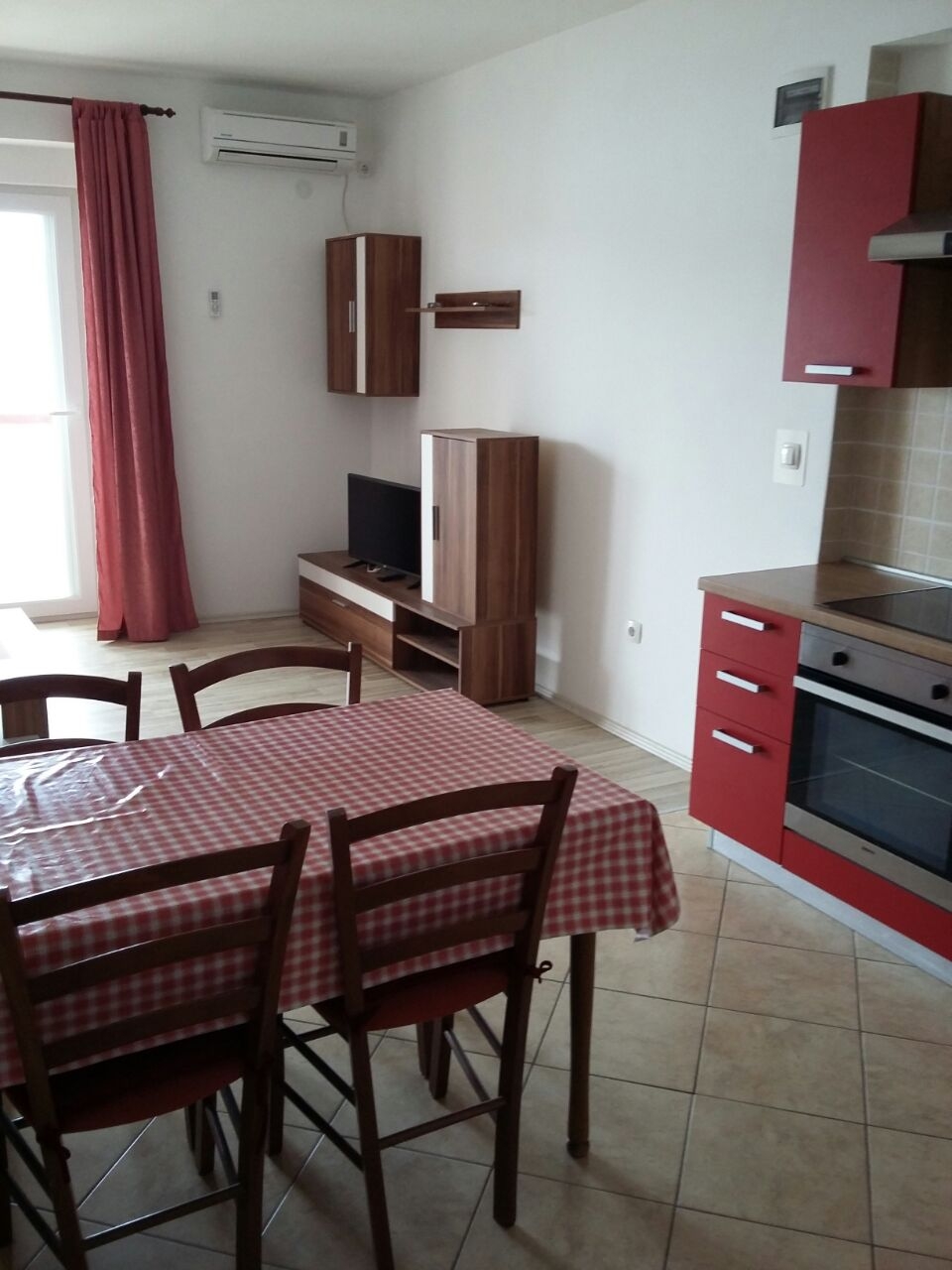 Apartment can accommodate 4 guests. Beds are situated in 1 sleeping rooms, but also in the living room, within 39m2. Guests can use a private terrace to enjoy the warm summer evenings. The apartment offers the sea view. Food can be prepared using barbecue which is shared with other guests too. This accommodation unit welcomes pets at an additional charge. INCLUDED IN THE PRICE: tourist tax, final cleaning, air-conditioning, parking, internet, iron, hairdryer, portable barbecue, sunchairs. OBLIGATORY ADDITIONAL COSTS: short stay fee (surcharge depending on a number of booked nights: 30% - 1, 20% - 2, 10% - 3). OPTIONAL ADDITIONAL COSTS: laundry (€10.00 washing), boat (€180.00 per night), boat mooring (€15.00 per night), pets (€10.00 per night), additional bed (€10.00 per night). The availability of additional services for your chosen dates of stay, as well as their prices (if none are listed) must be checked ahead of time. Any additional services not shown in the price calculation are payable directly to the property owner and only if used by the visitor.
