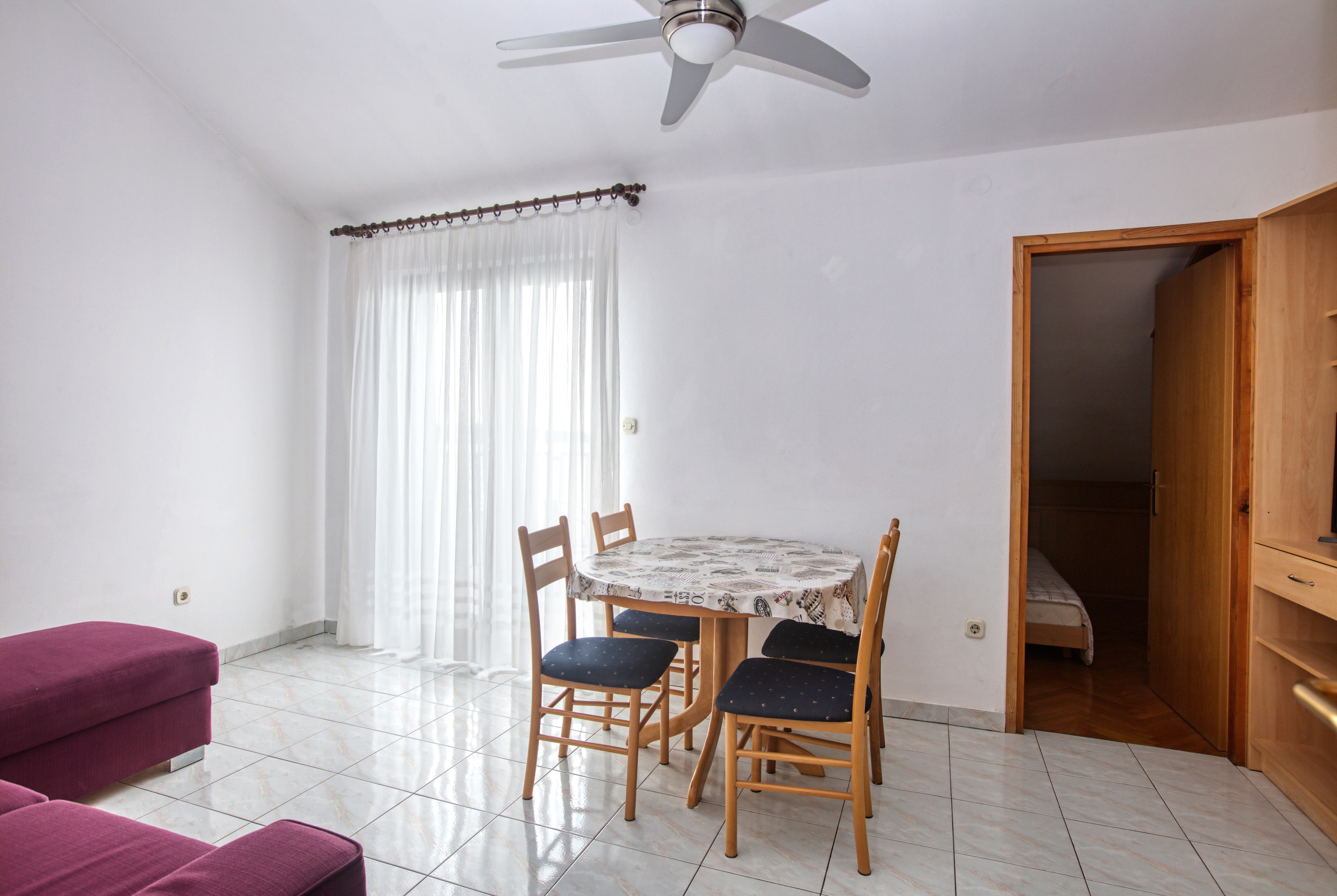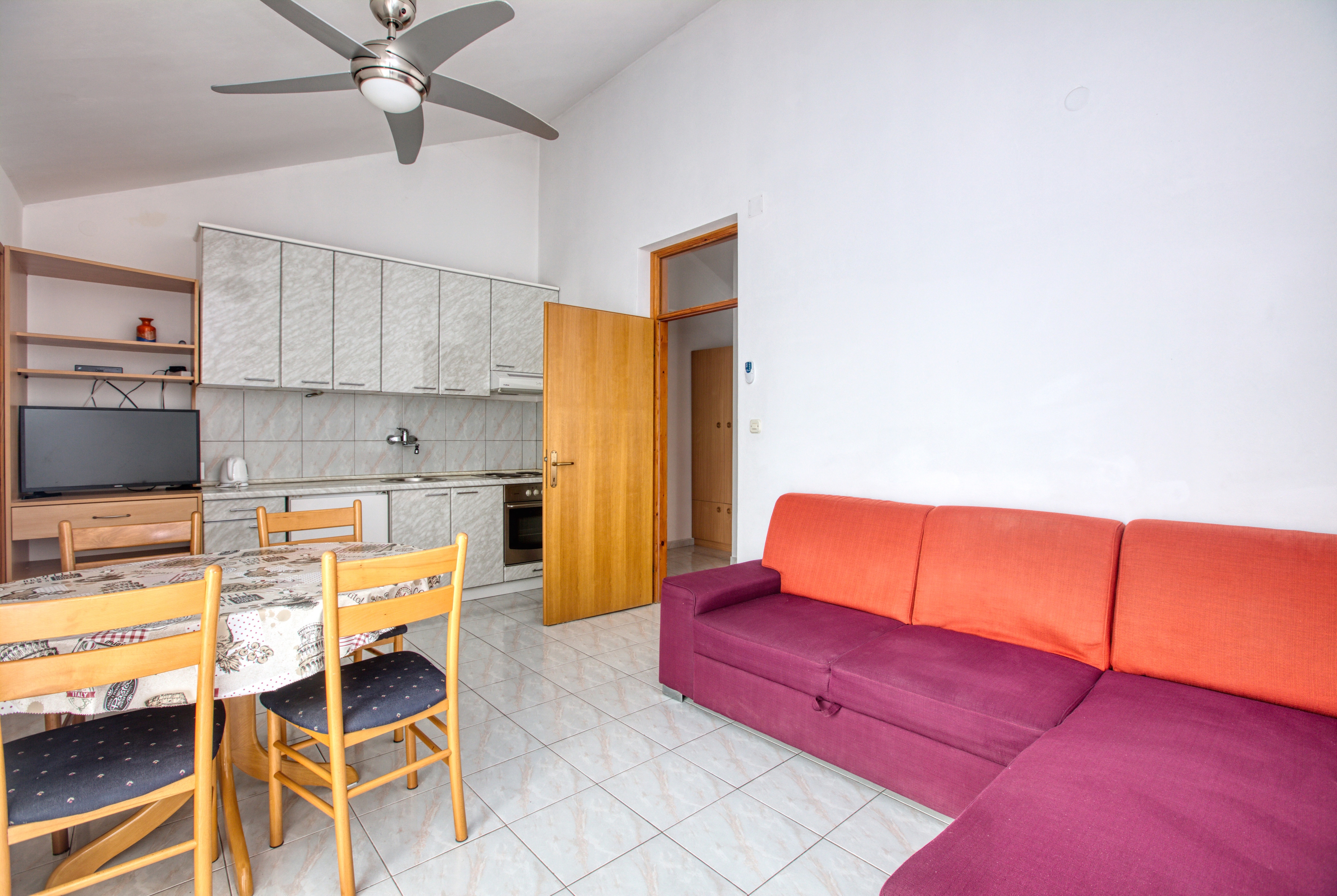 Apartment can accommodate 4 guests. Beds are situated in 1 sleeping rooms, but also in the living room, within 47m2. Guests can use a private balcony to enjoy the warm summer evenings. The apartment offers the sea view. Food can be prepared using barbecue which is shared with other guests too. INCLUDED IN THE PRICE: tourist tax, final cleaning, air-conditioning, parking, internet, baby cot, sunshade, sunchairs. OPTIONAL ADDITIONAL COSTS: garage (€5.00 per night), boat mooring (€10.00 per night). The availability of additional services for your chosen dates of stay, as well as their prices (if none are listed) must be checked ahead of time. Any additional services not shown in the price calculation are payable directly to the property owner and only if used by the visitor.