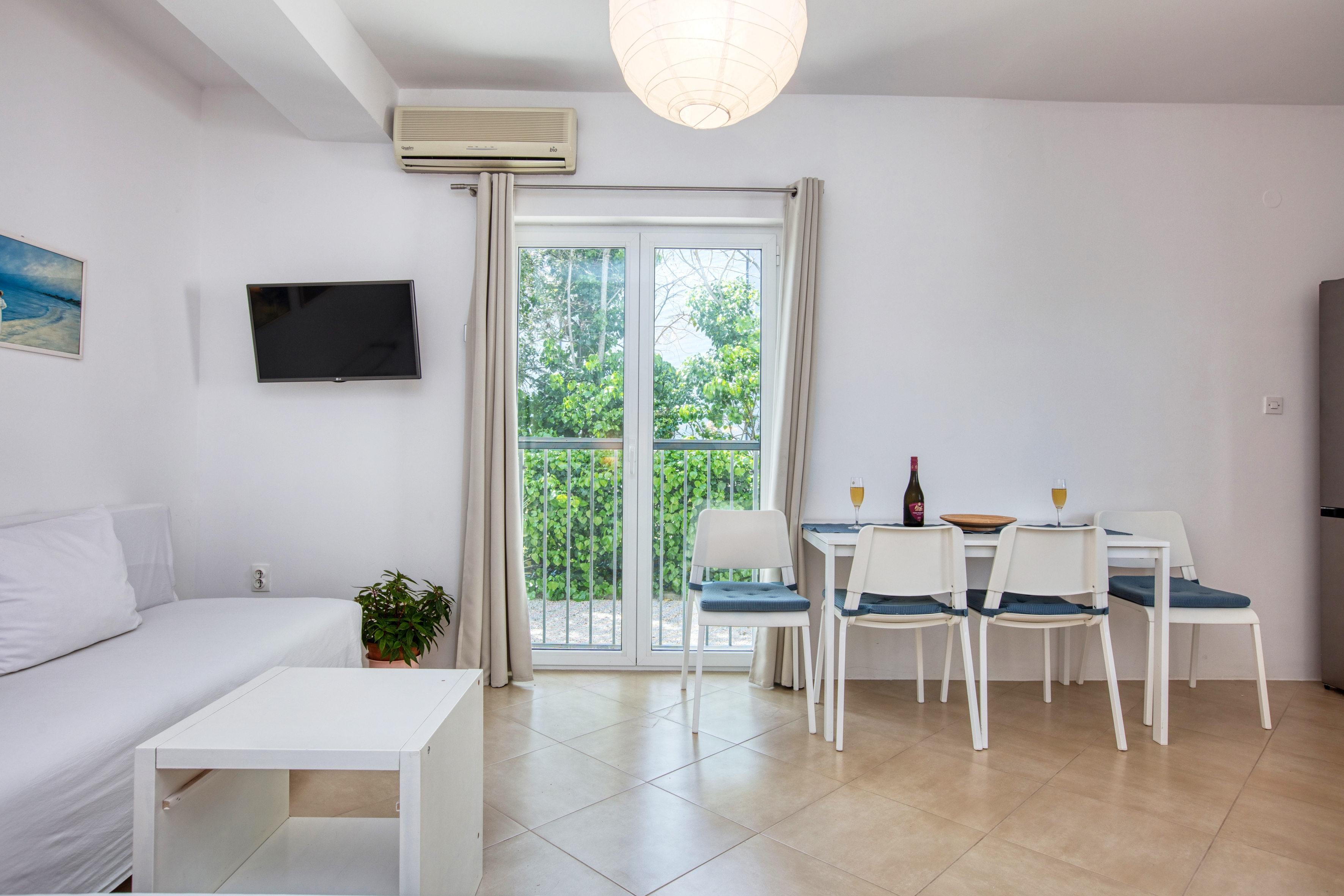 Apartment can accommodate 2 guests. Beds are situated in 1 sleeping rooms, within 45m2. Guests can use a private terrace to enjoy the warm summer evenings. Food can be prepared using barbecue which is shared with other guests too. INCLUDED IN THE PRICE: tourist tax, final cleaning, air-conditioning, parking, internet, laundry, baby cot, iron, ironing board, hairdryer, 2 beds for children (included in the price). OBLIGATORY ADDITIONAL COSTS: short stay fee (surcharge depending on a number of booked nights: 30% - 1, 20% - 2, 10% - 3). The availability of additional services for your chosen dates of stay, as well as their prices (if none are listed) must be checked ahead of time. Any additional services not shown in the price calculation are payable directly to the property owner and only if used by the visitor. Discounts to the base price: free day 21=19 (for reservations of 21 or more days you get 2 free days for the stay until 31122026).