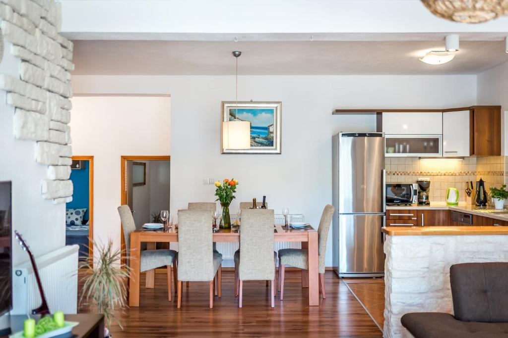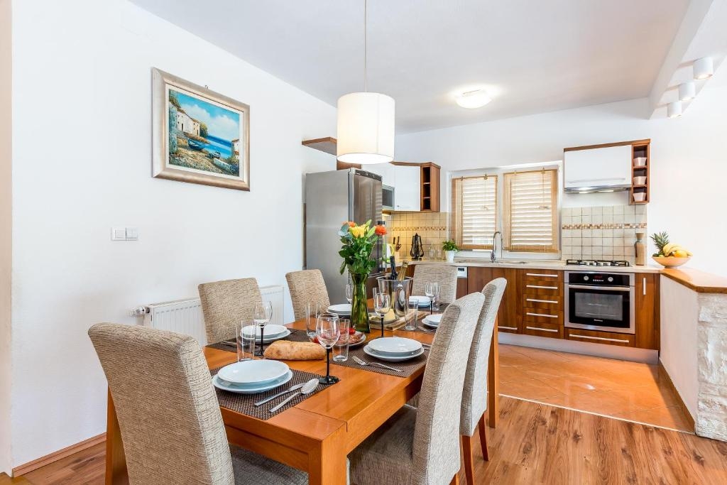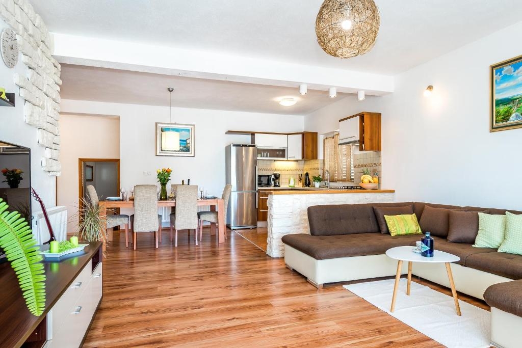 House can accommodate 7 guests. Beds are situated in 3 sleeping rooms, but also in the living room, within 86m2. Guests can use a private terrace to enjoy the warm summer evenings. For full enjoyment and relaxation there is a private barbecue for this accommodation guests only. Shared pool is on disposal during stay. This accommodation unit welcomes pets at an additional charge. Some of the rooms of the accommodation unit are not connected with the rest of the unit. INCLUDED IN THE PRICE: tourist tax, final cleaning, air-conditioning, pool, parking, internet, baby cot, iron, ironing board, hairdryer, sunchairs. OPTIONAL ADDITIONAL COSTS: pets (€5.00 per night). The availability of additional services for your chosen dates of stay, as well as their prices (if none are listed) must be checked ahead of time. Any additional services not shown in the price calculation are payable directly to the property owner and only if used by the visitor. Discounts to the base price: free day 14=13 (for reservations of 14 or more days you get one free day for the stay until 31122026).