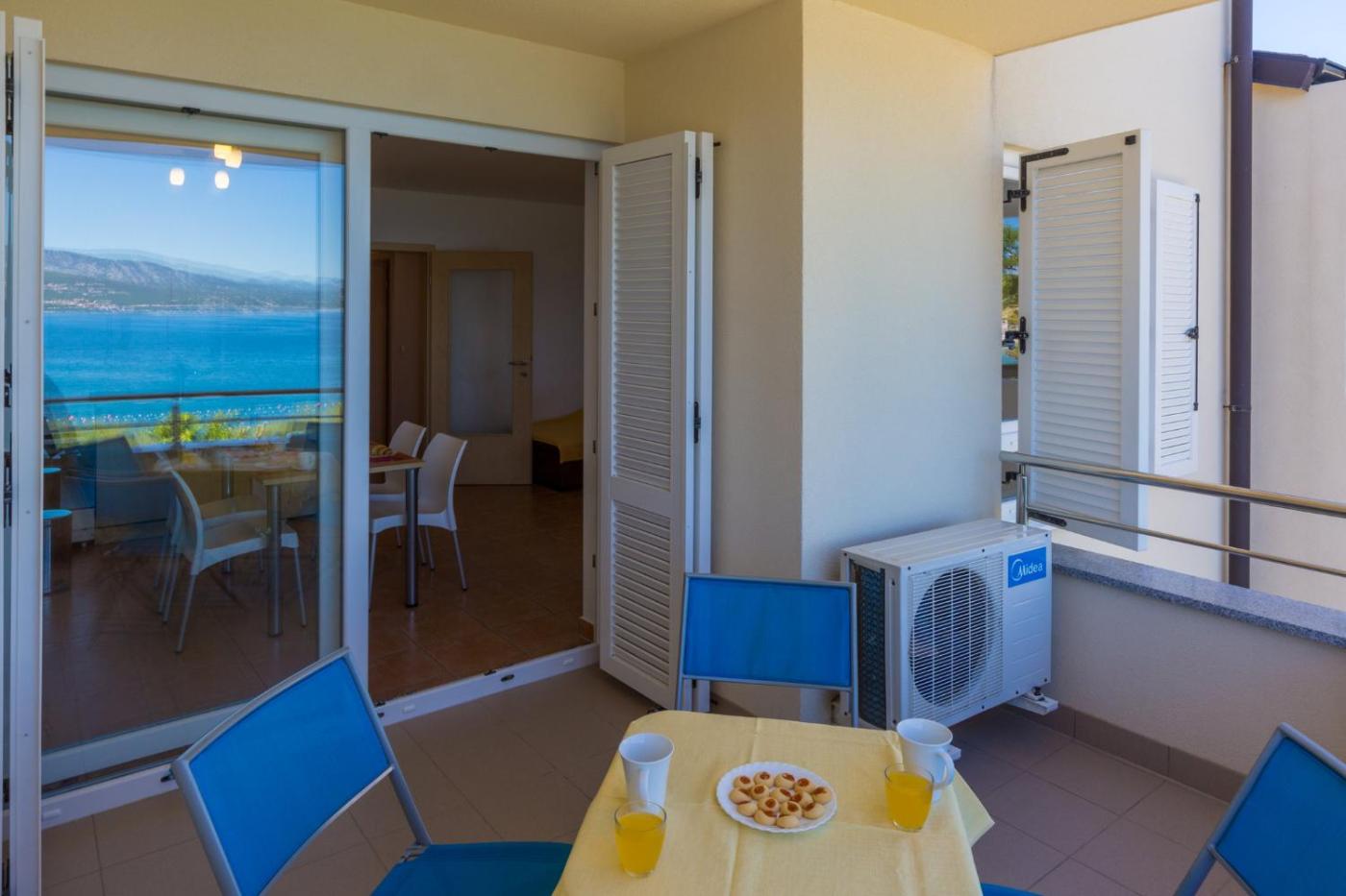 Apartment with Balcony. This air-conditioned apartment consists of 1 living room, 2 separate bedrooms and 1 bathroom with a shower. Guests will find a stovetop, a refrigerator, a dishwasher and kitchenware in the well-fitted kitchen. The apartment also offers a barbecue. The apartment features a tea and coffee maker, a balcony and sea views. The unit offers 4 beds. ;