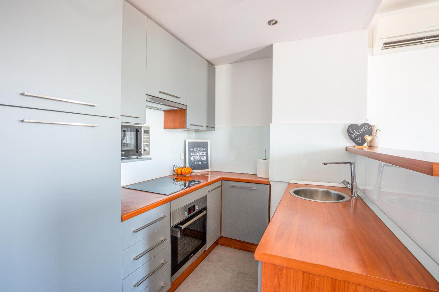 Apartment. This apartment is comprised of 1 living room, 1 separate bedroom and 1 bathroom with a bath and free toiletries. The well-fitted kitchen features a stovetop, a refrigerator, kitchenware and an oven. The air-conditioned apartment offers a flat-screen TV with cable channels, a washing machine, a seating area, a dining area as well as sea views. The unit offers 2 beds.