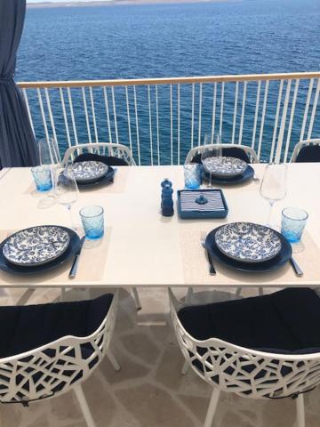 The spacious villa with a terrace and sea views features 4 bedrooms, a living room, a flat-screen TV, an equipped kitchen with a dishwasher and an oven, and 5 bathrooms with a walk-in shower. The air-conditioned unit at the property features a bath and a dressing room. For added privacy, the accommodation has a private entrance and soundproofing.