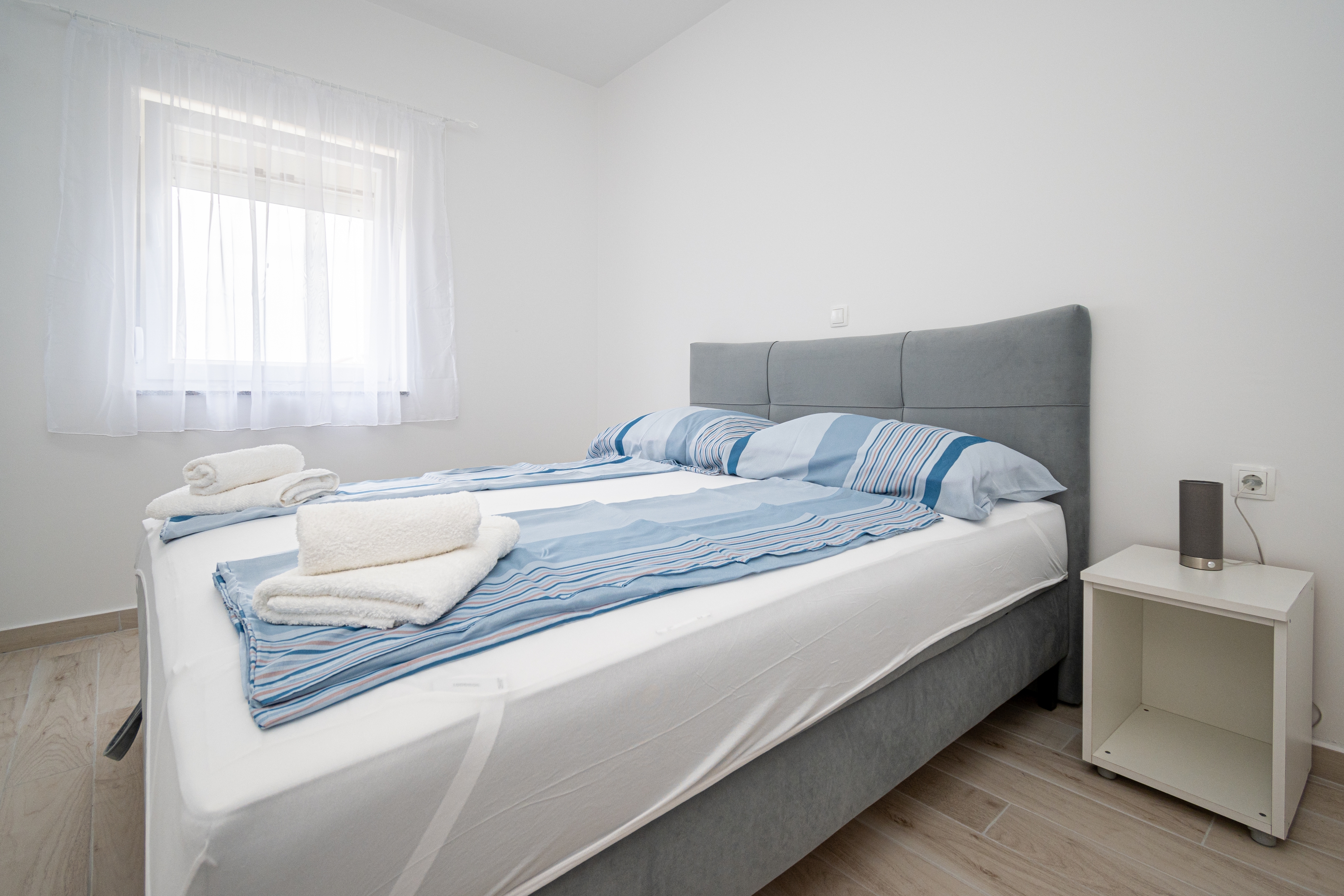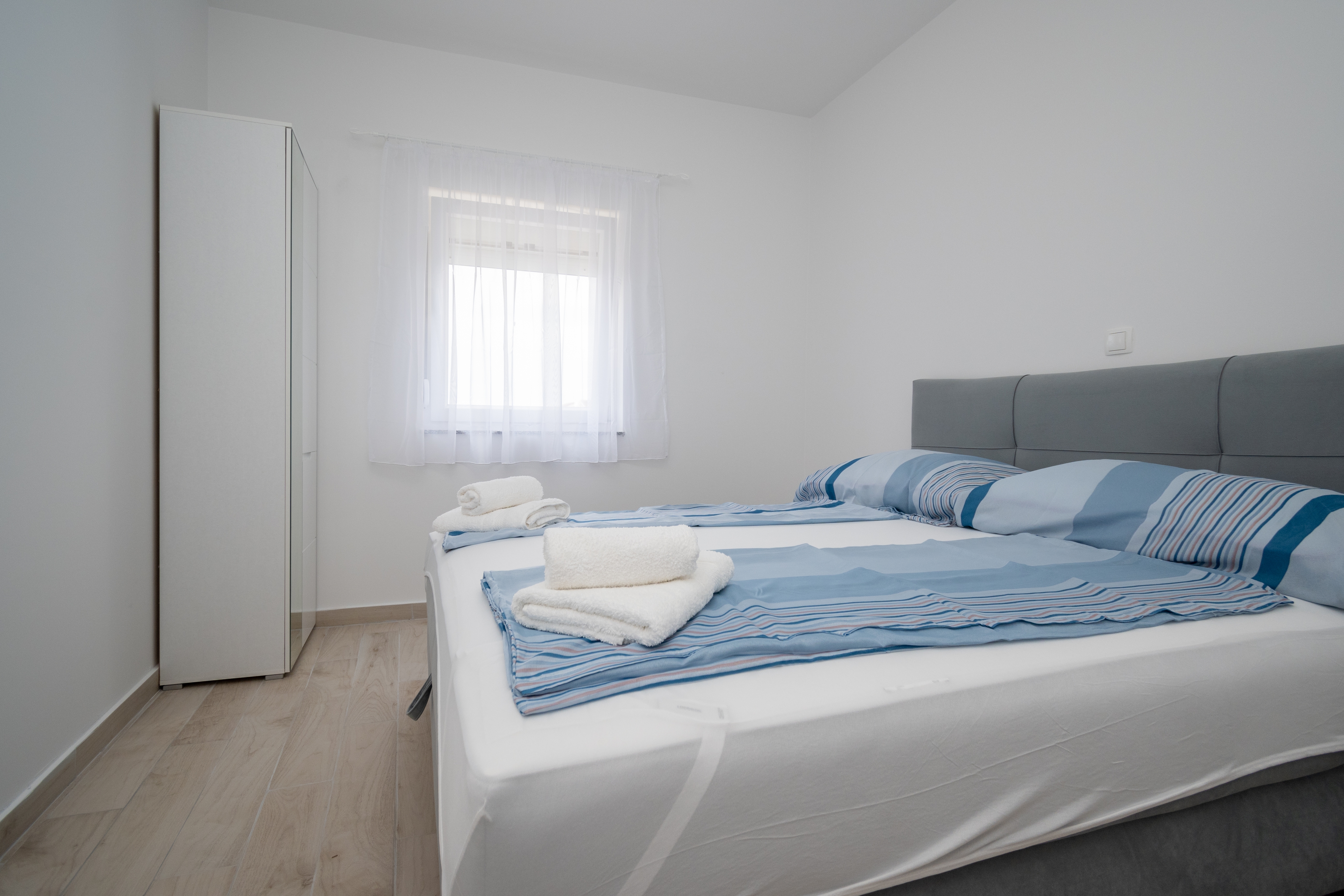 Apartment can accommodate 2 guests. Beds are situated in 1 sleeping rooms, within 33m2. Guests can use a private terrace to enjoy the warm summer evenings. Food can be prepared using barbecue which is shared with other guests too. INCLUDED IN THE PRICE: tourist tax, final cleaning, air-conditioning, parking, internet, iron, ironing board, hairdryer. OBLIGATORY ADDITIONAL COSTS: short stay fee (surcharge depending on a number of booked nights: 30% - 1, 20% - 2, 10% - 3). OPTIONAL ADDITIONAL COSTS: additional bed (€15.00 per night). The availability of additional services for your chosen dates of stay, as well as their prices (if none are listed) must be checked ahead of time. Any additional services not shown in the price calculation are payable directly to the property owner and only if used by the visitor.