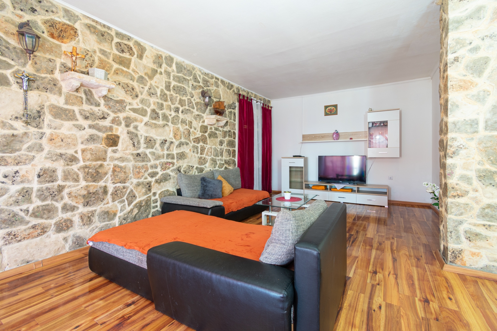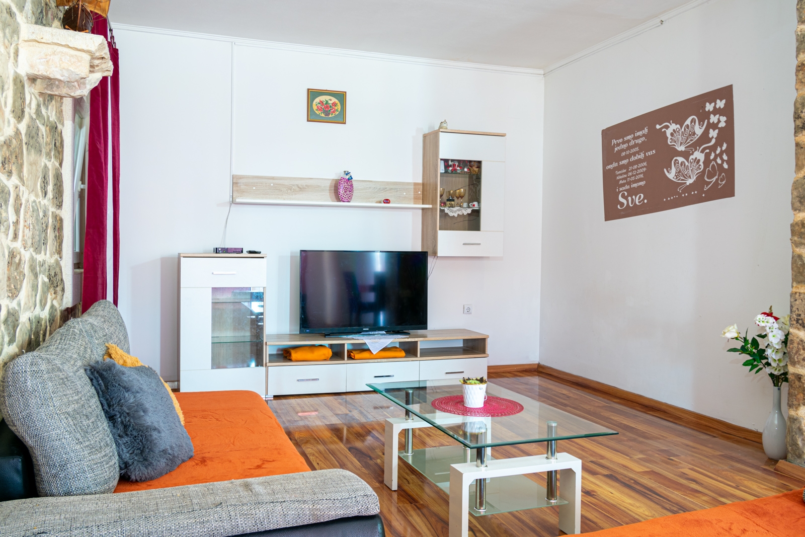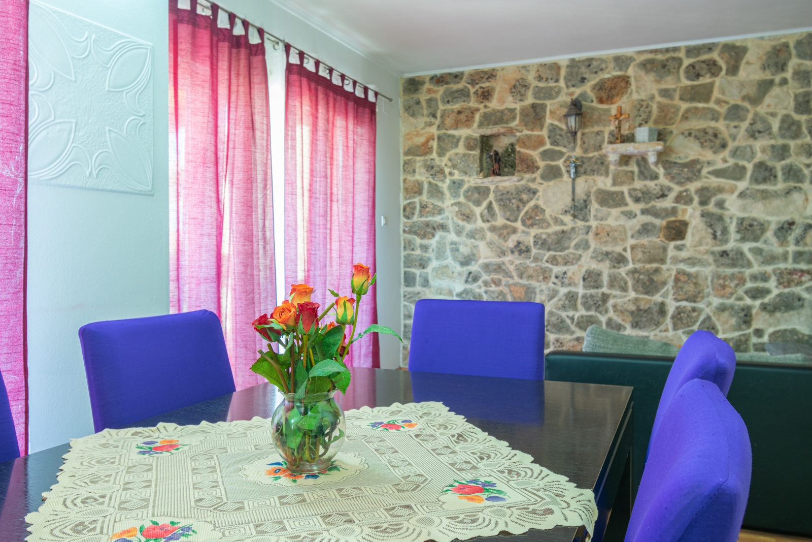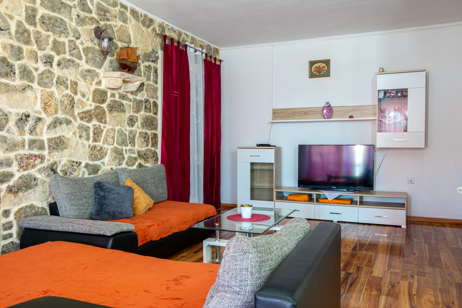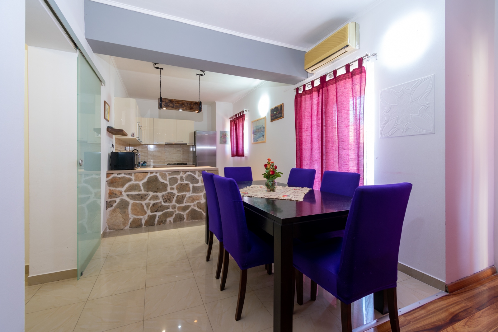 Apartment can accommodate 7 guests. Beds are situated in 3 sleeping rooms, but also in the living room, within 91m2. Guests can use a private terrace to enjoy the warm summer evenings. The apartment offers the sea view. Food can be prepared using barbecue which is shared with other guests too. INCLUDED IN THE PRICE: tourist tax, final cleaning, air-conditioning, parking, internet, iron, ironing board, hairdryer. OBLIGATORY ADDITIONAL COSTS: short stay fee (surcharge depending on a number of booked nights: 30% - 1, 20% - 2, 10% - 3). The availability of additional services for your chosen dates of stay, as well as their prices (if none are listed) must be checked ahead of time. Any additional services not shown in the price calculation are payable directly to the property owner and only if used by the visitor. Discounts to the base price: free day 14=13 (for reservations of 14 or more days you get one free day for the stay until 31122026).