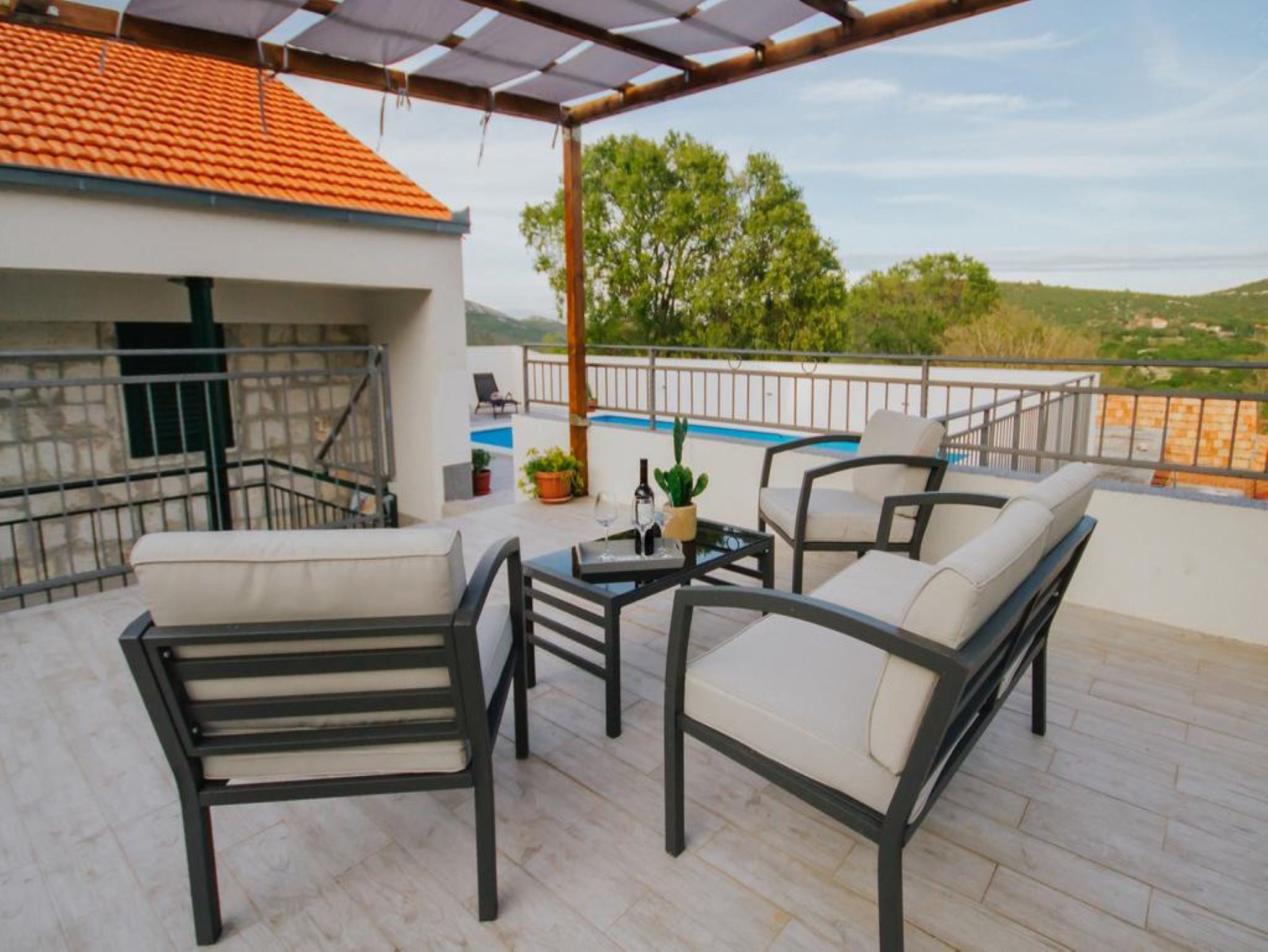 House can accommodate 6 guests. Beds are situated in 3 sleeping rooms, within 90m2. Guests can use a private terrace to enjoy the warm summer evenings. During stay, there is a private pool for relaxation and pleasure. INCLUDED IN THE PRICE: tourist tax, final cleaning, pool, parking, internet, baby cot, iron, ironing board, hairdryer. The availability of additional services for your chosen dates of stay, as well as their prices (if none are listed) must be checked ahead of time. Any additional services not shown in the price calculation are payable directly to the property owner and only if used by the visitor.